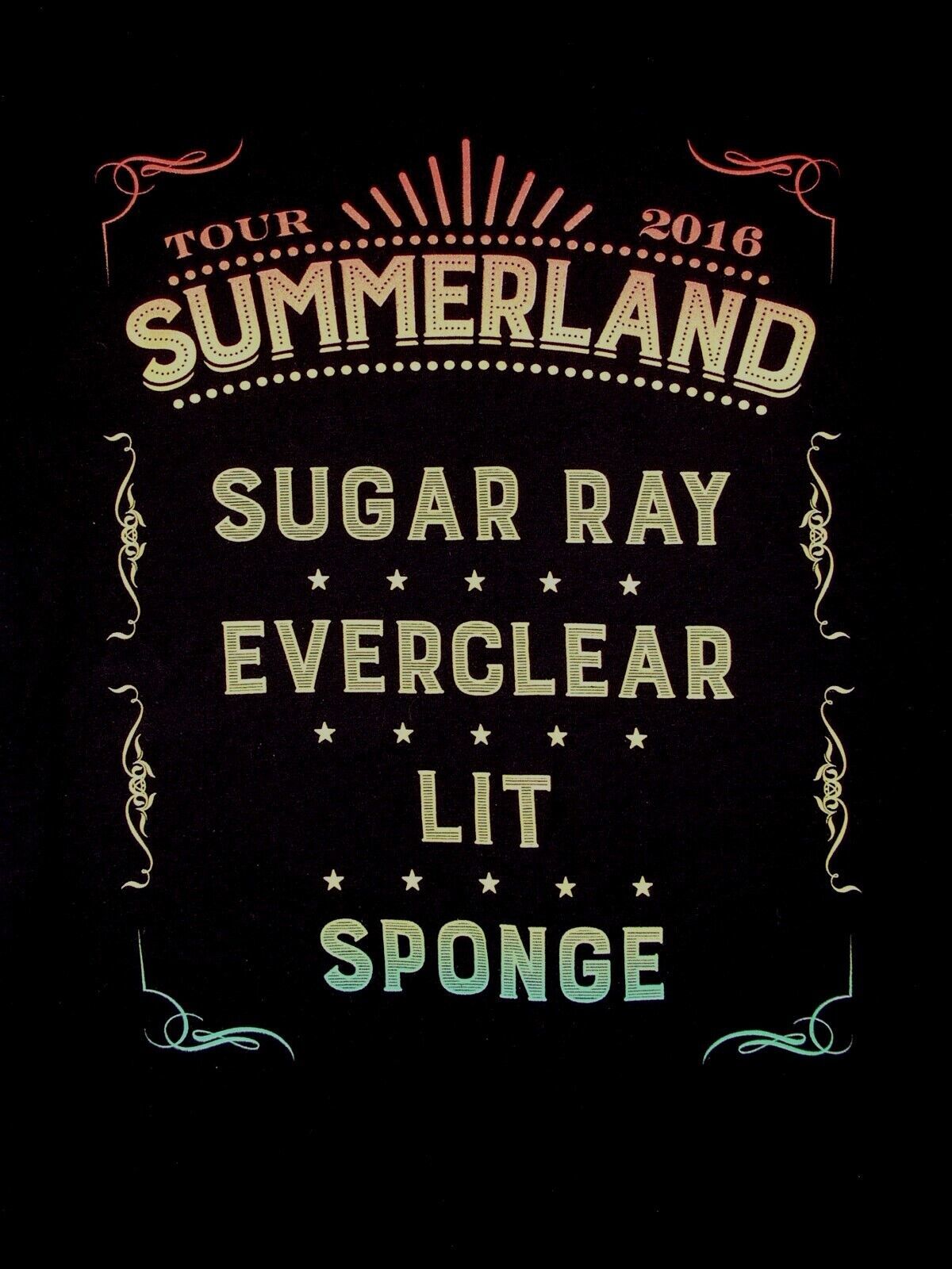 Summerland Tour 2016 Concert T Shirt Sugar Ray Everclear Lit Sponge Size Small