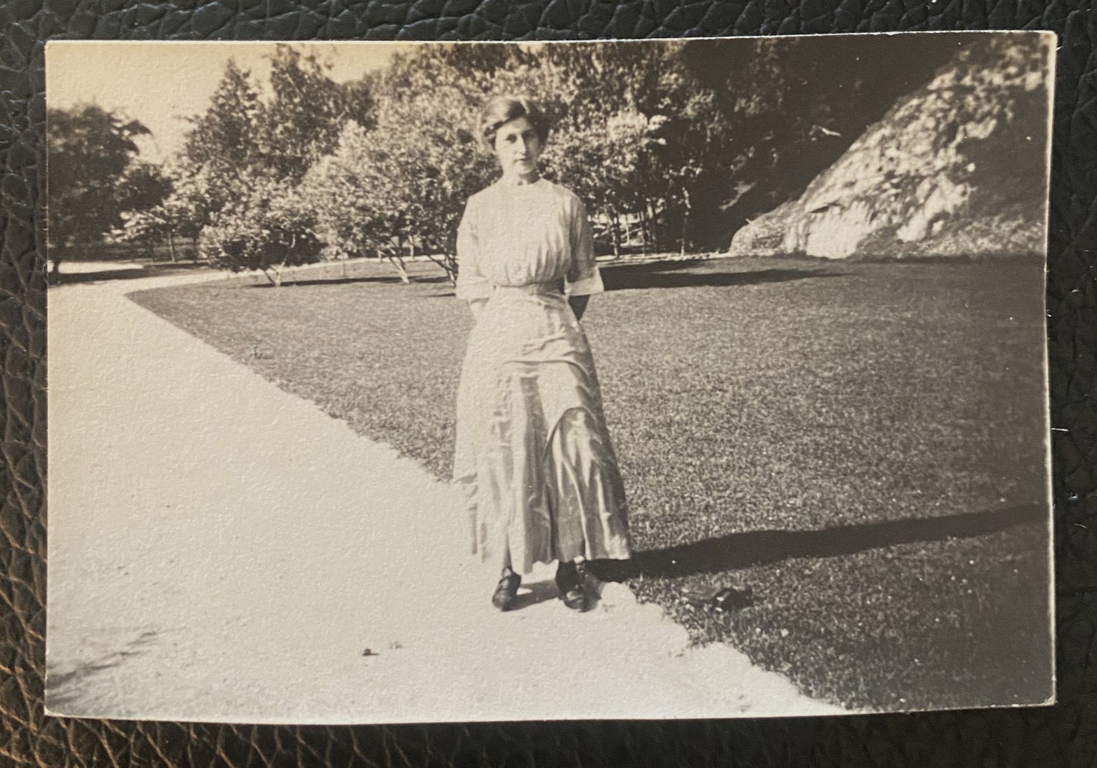 Black And White Photo Of Lady At Busche Gardens 1930's
