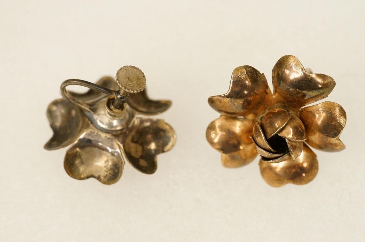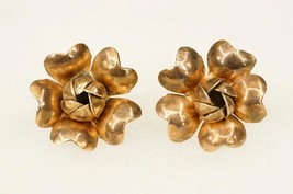 Estate Jewelry Sterling Silver 925 1940s Modernist Flower Screwback Earrings