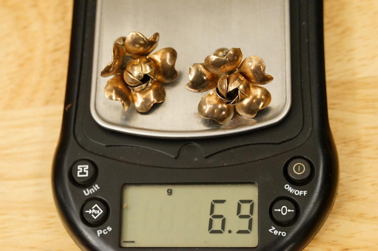 Estate Jewelry Sterling Silver 925 1940s Modernist Flower Screwback Earrings. Need a gentle polish. Direct from a local estate. They measure 7/8" across. signed sterling on the stems. No smoke or pet odors.