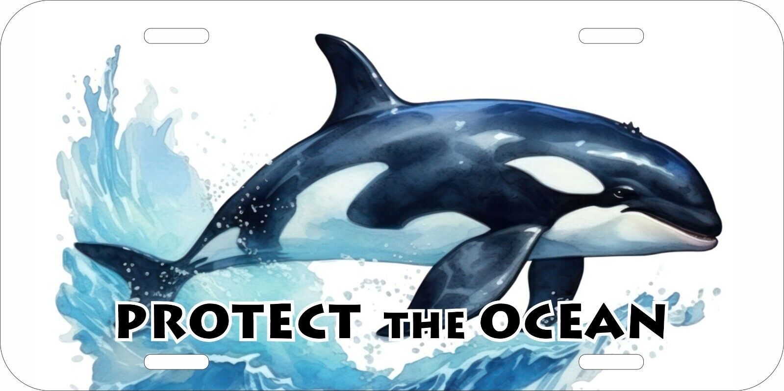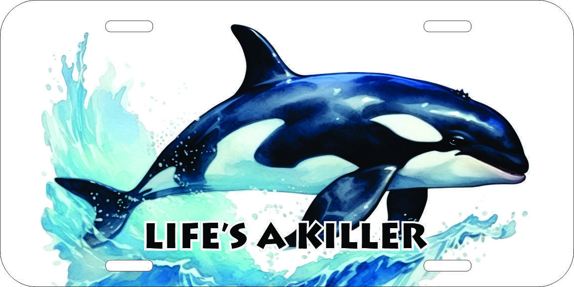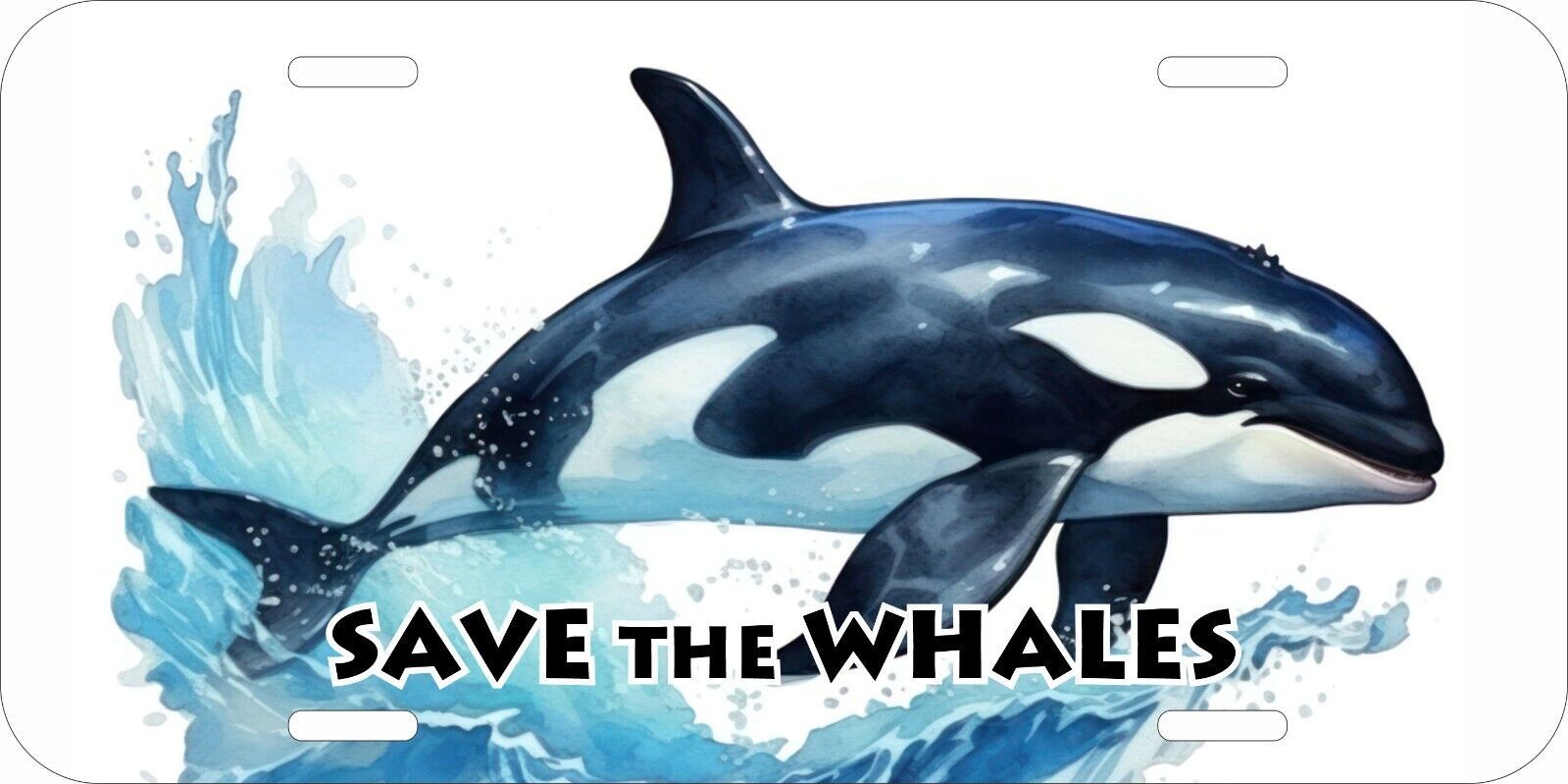 KILLER WHALE WHALES SEA OCEAN SPLASH SAVE LOVE PRINTED METAL LICENSE PLATE