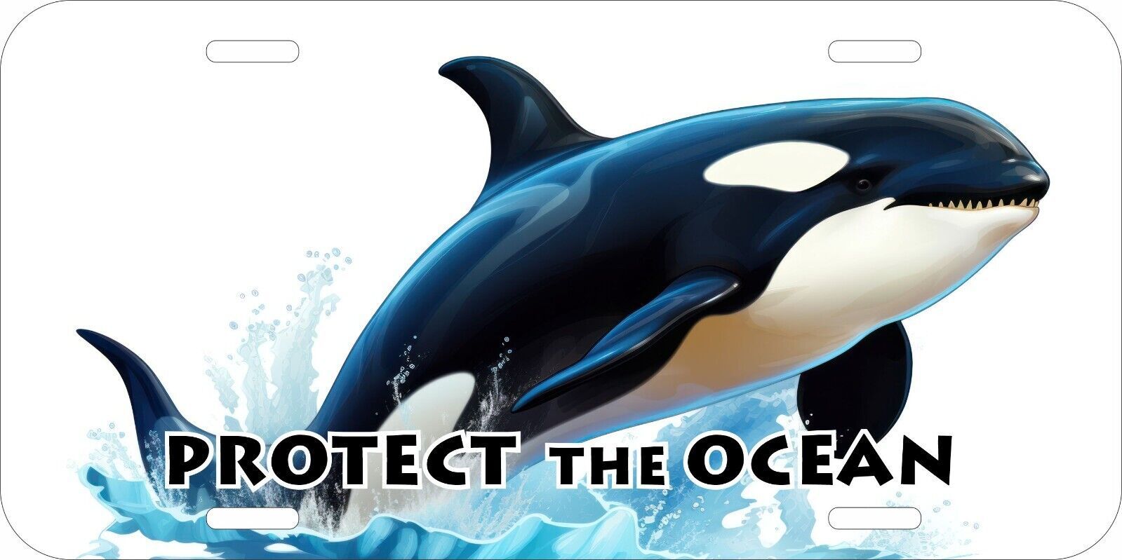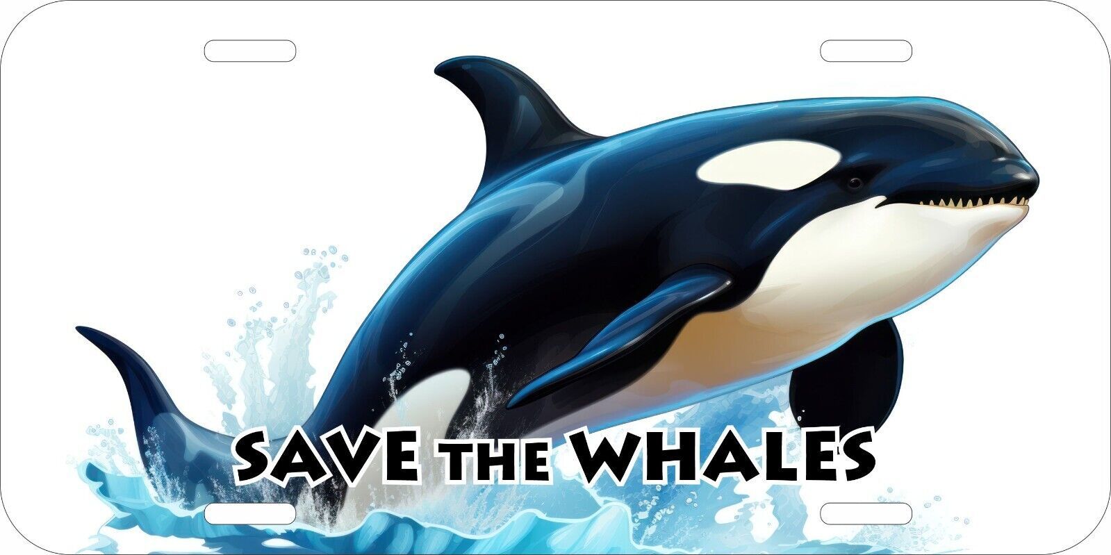KILLER WHALE WHALES SEA OCEAN SPLASH SAVE LOVE ORCAS PRINTED METAL LICENSE PLATE