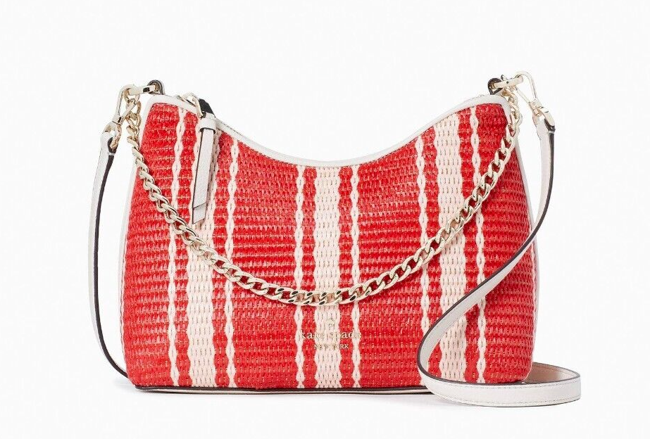 New Kate Spade Beach Chair Striped Heirloom Straw with Pebble trim / Dust bag