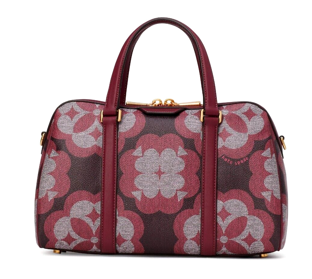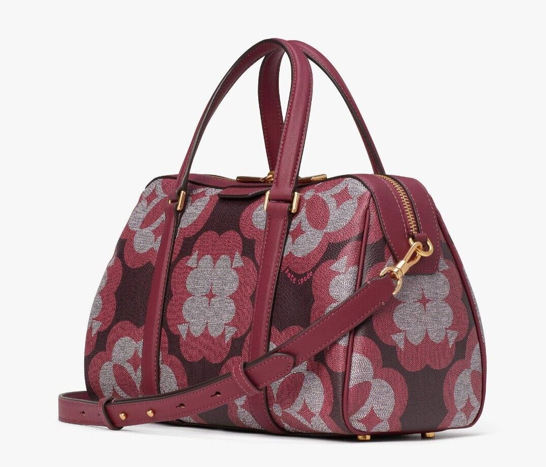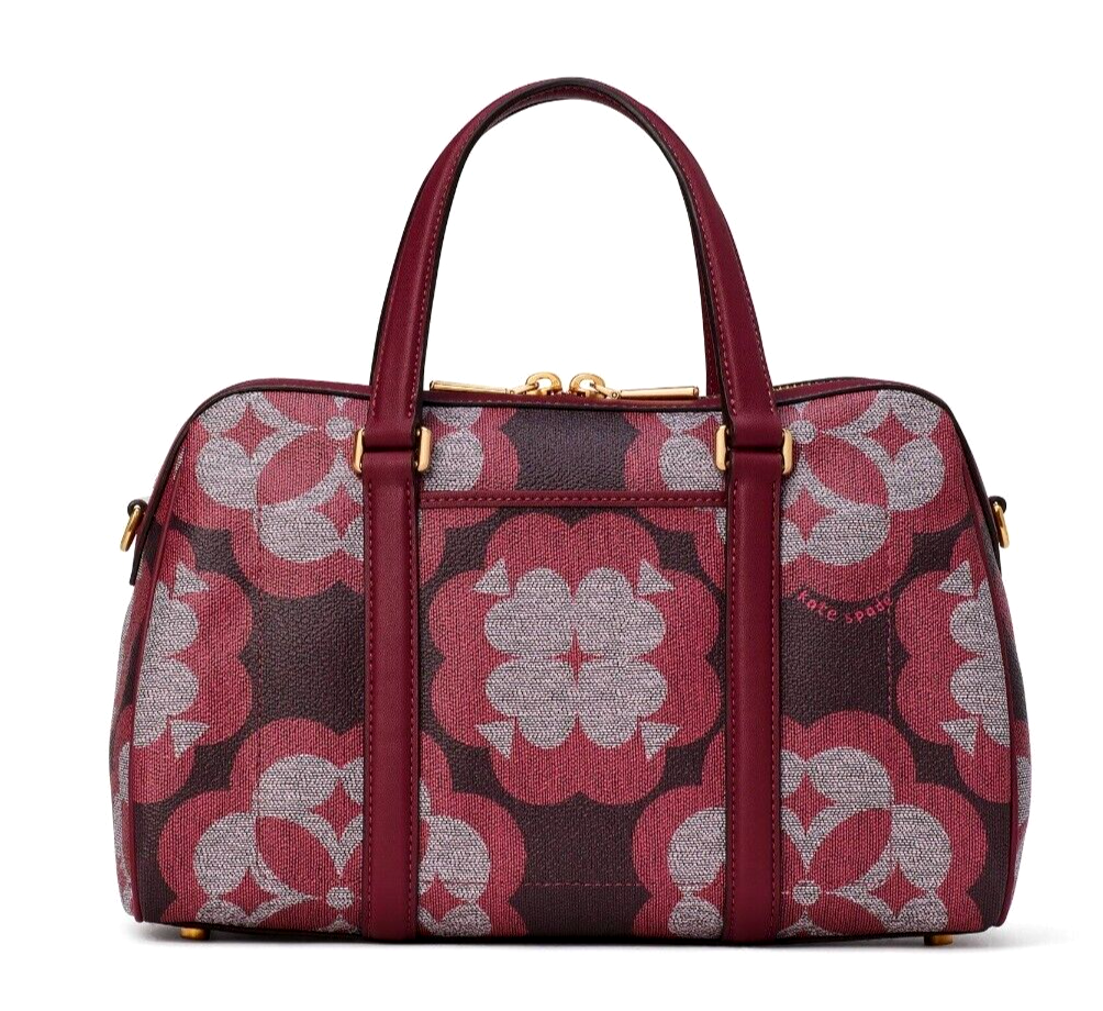New Kate Spade Flower Monogram Coated Canvas Satchel Garnet Rose with Dust bag