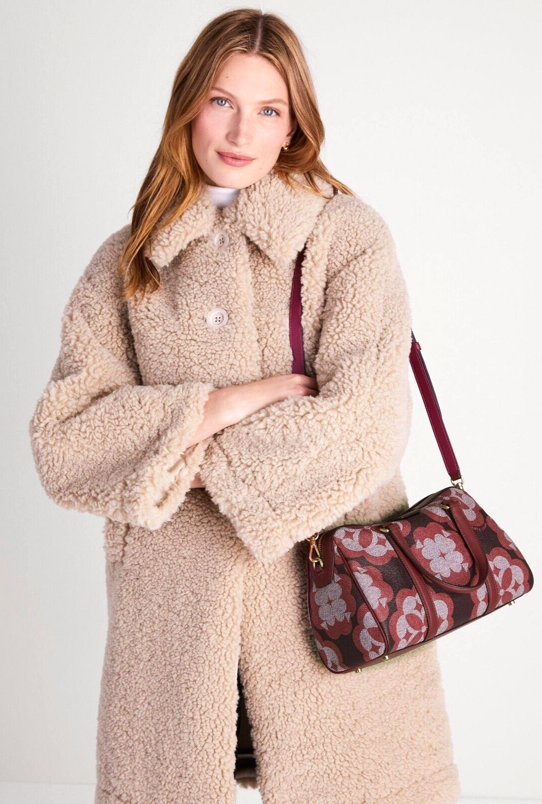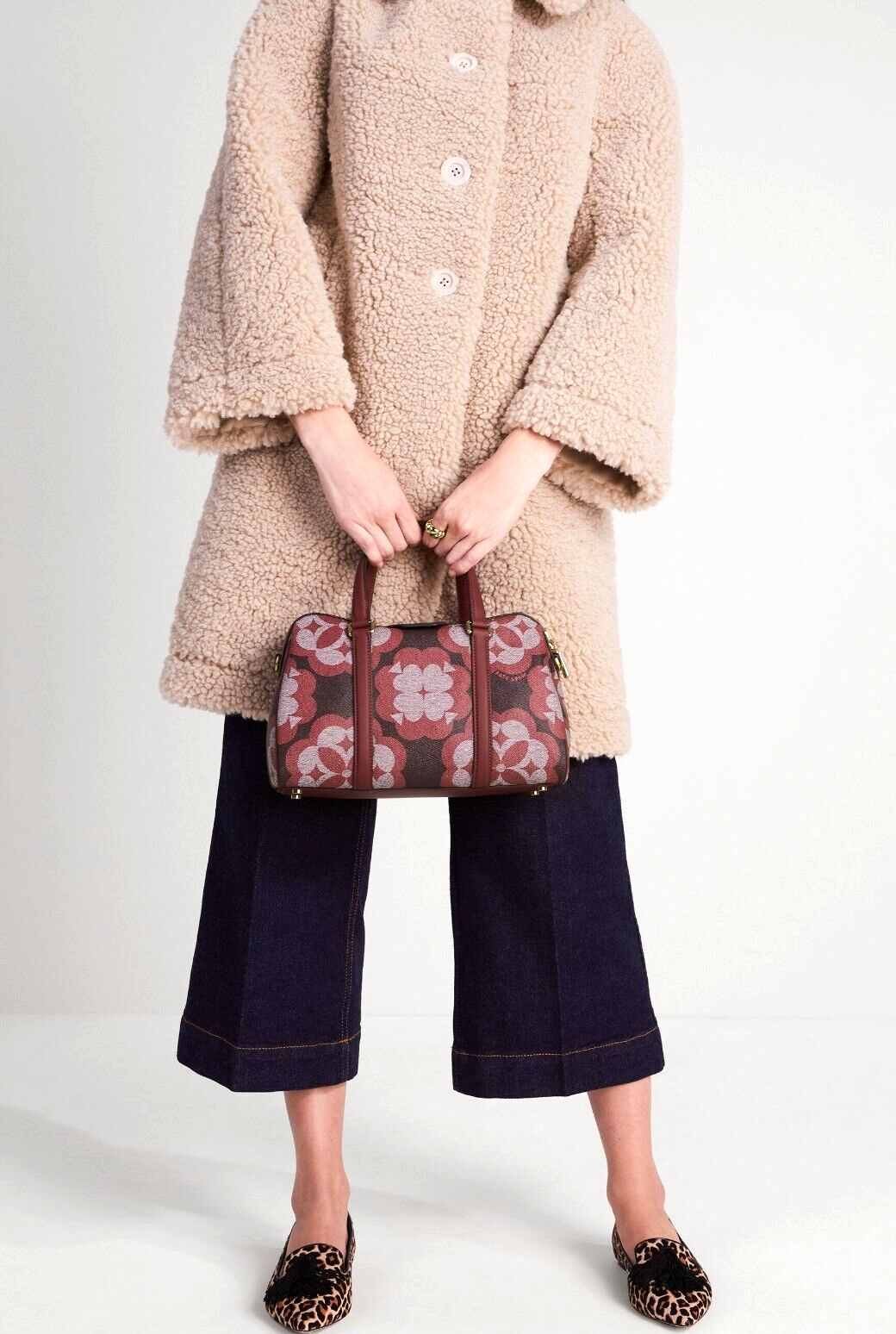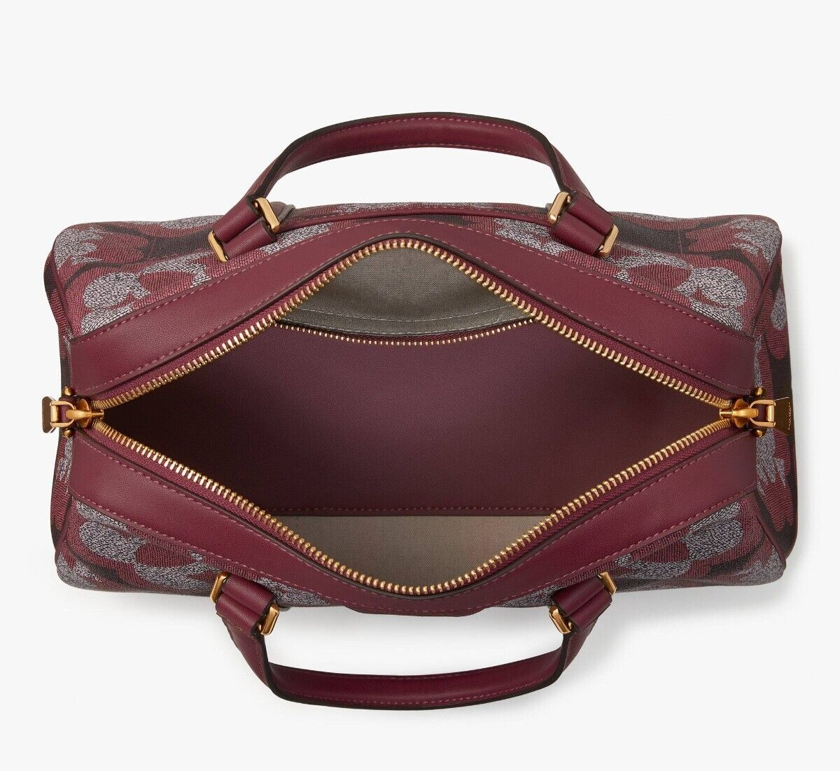 New Kate Spade Flower Monogram Coated Canvas Satchel Garnet Rose with Dust bag