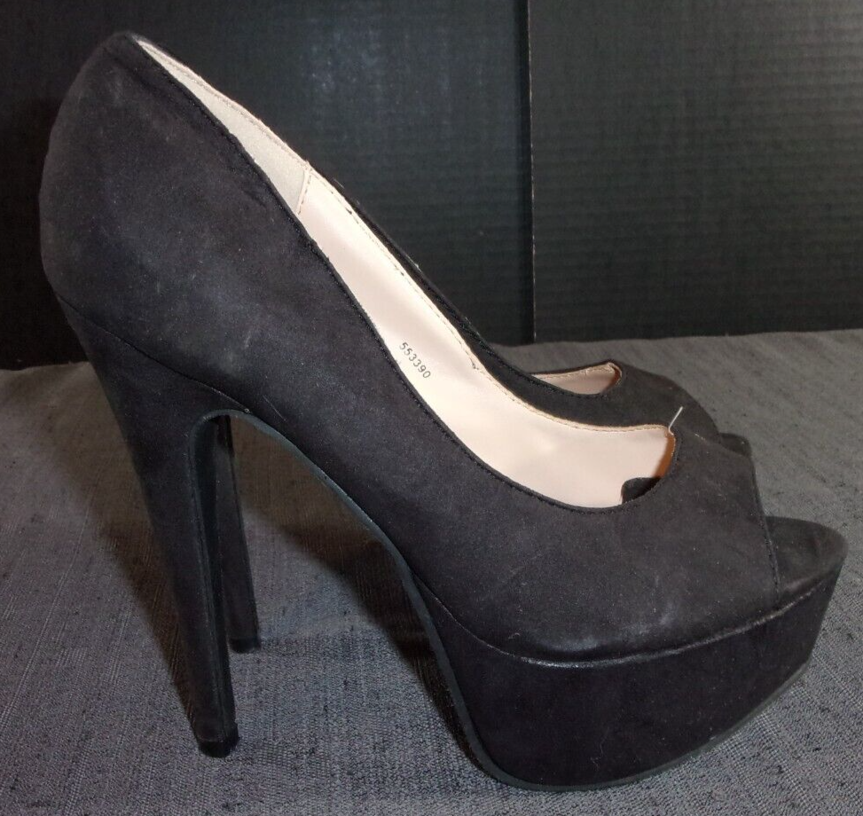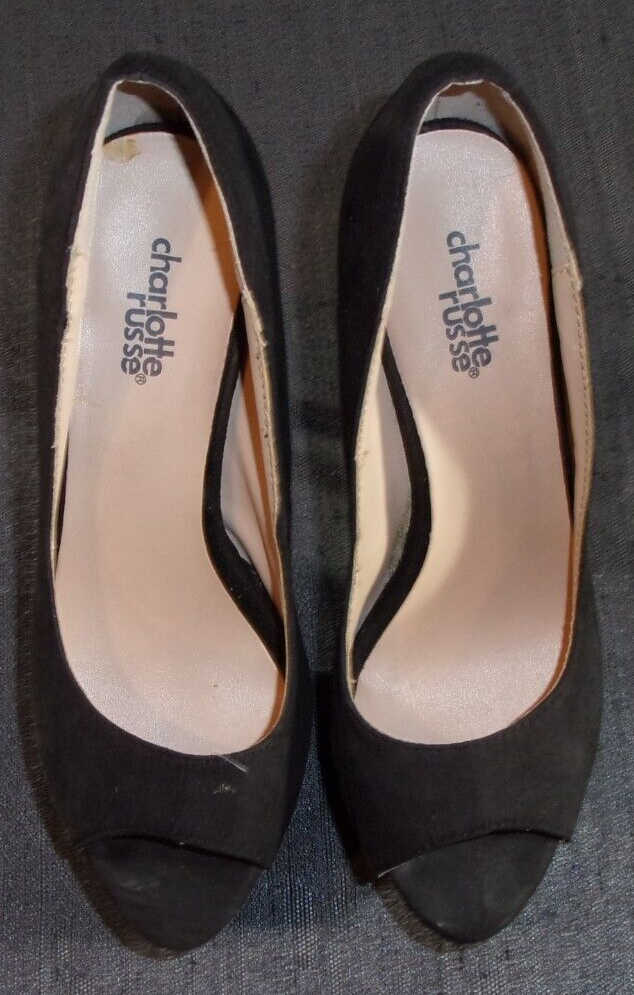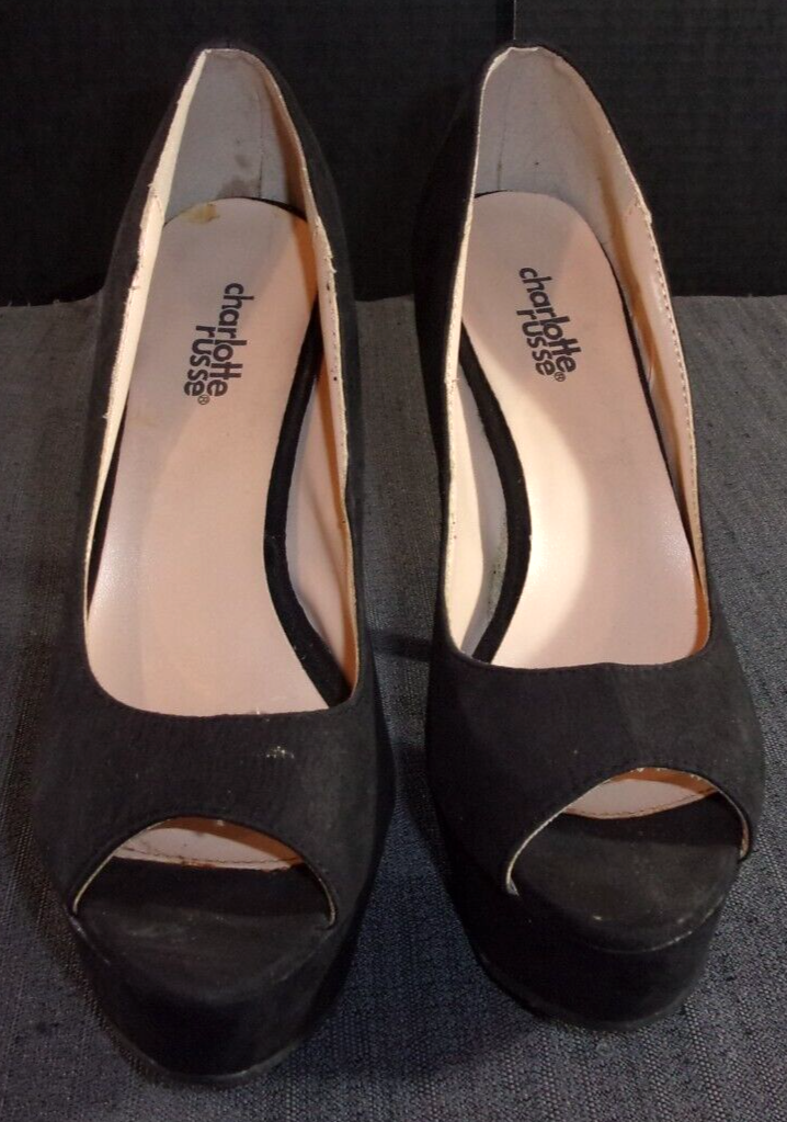CHARLOTTE RUSSE OPENED TOE SIMPLE CHIC BLACK 6 INCH STILETTO HEELS SHOES SIZE 6