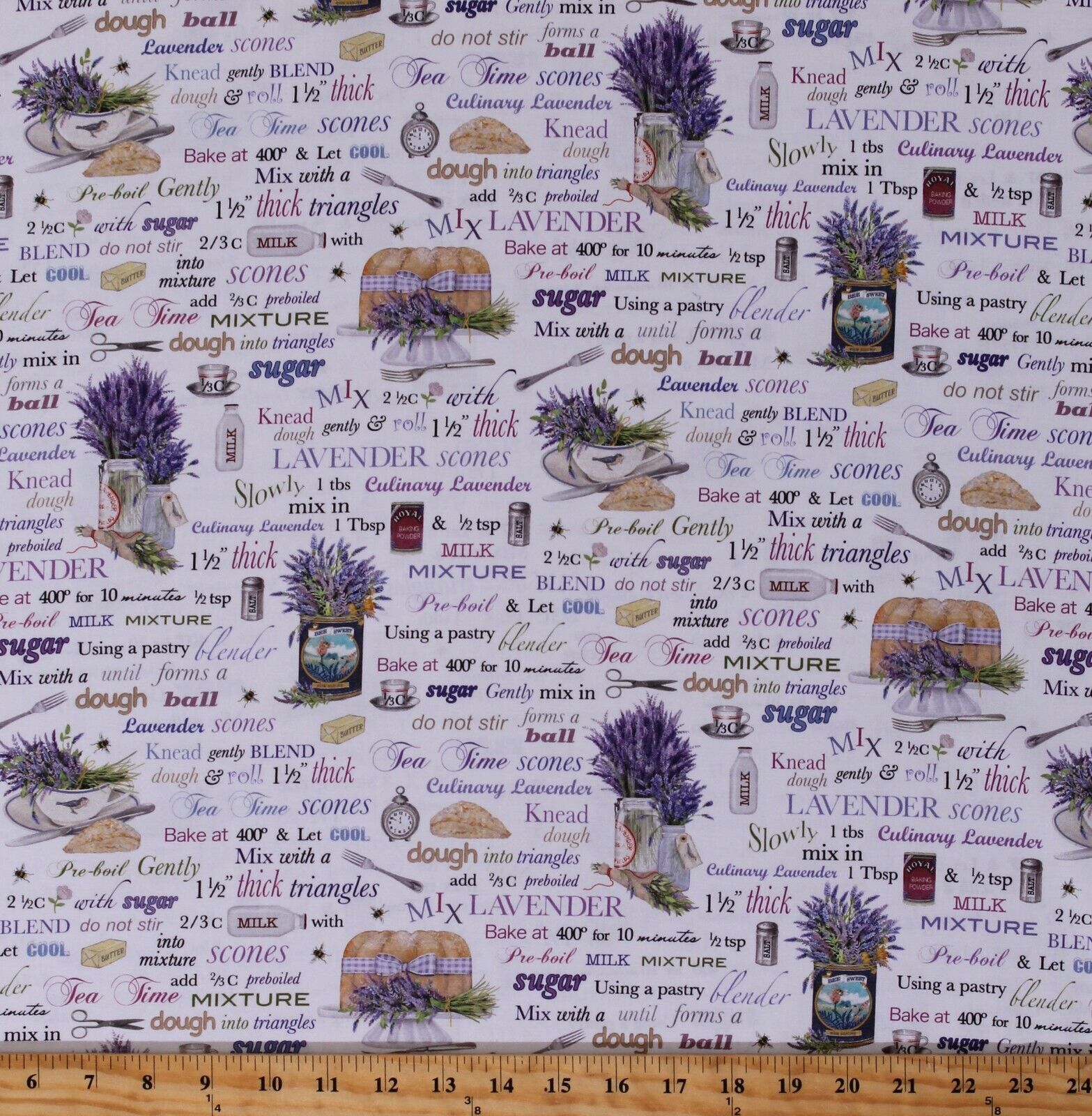 Cotton Kitchen Baking Food Recipe Book Lavender Flowers Scones Pastry Chef Purple Everyday Favorites Digital Cotton Fabric Print by the Yard (AMK-17448-23)