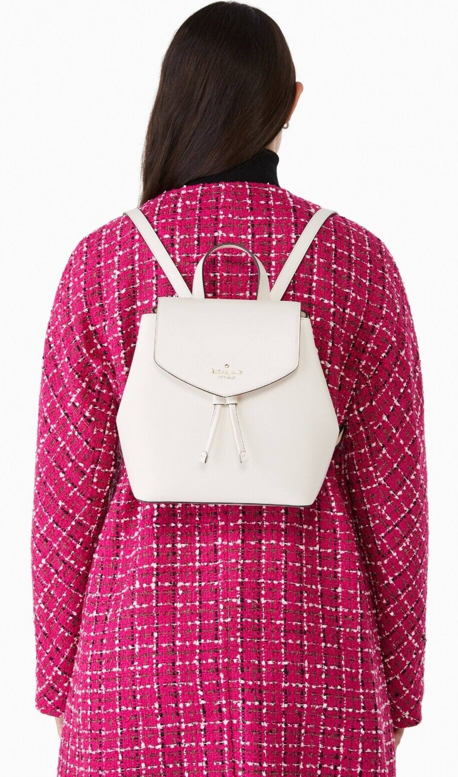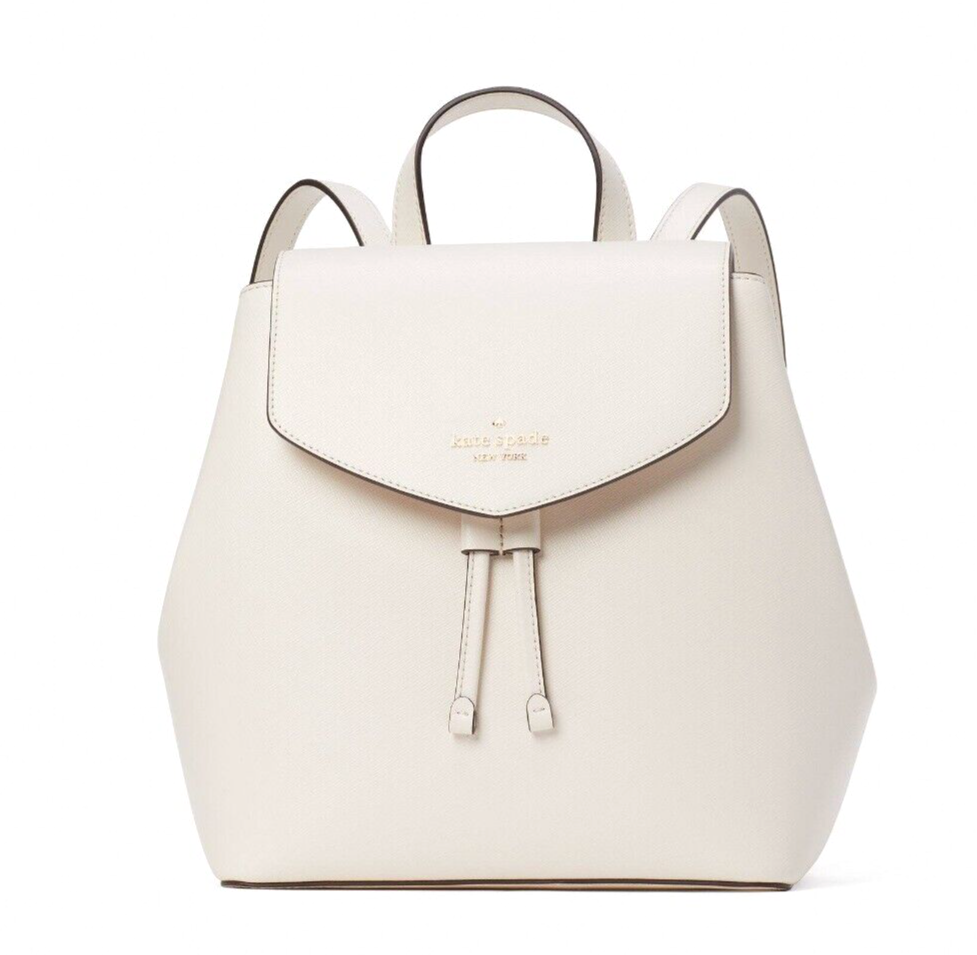 New Kate Spade Lizzie Saffiano Leather Medium Flap Backpack Parchment / Dust bag