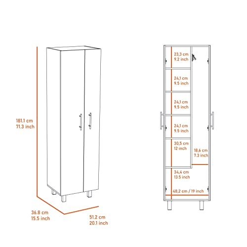 Pantry includes 5 internal shelves that provide ample room for all of your belongings11"W x 13.5"H. Stainless steel countertop39.3 "W x 19.7 "D that provides a durable and sleek workspace for various tasks, with sink included for washing hands, cleaning tools, or other items Double door cabinet with metal handles for easy access and storage, internal storage for storing cleaning supplies, tools, or other household items Ergonomically designed, and features 2 wide doors 18.9"W x 66.1"H With its simple assembly and easy-to-use key features, the Norway broom closet pantry is a must-have for any household Complete your room with other items from the collection sold separately Faucet not included, allowing you to choose a style that suits your needs and preferences.