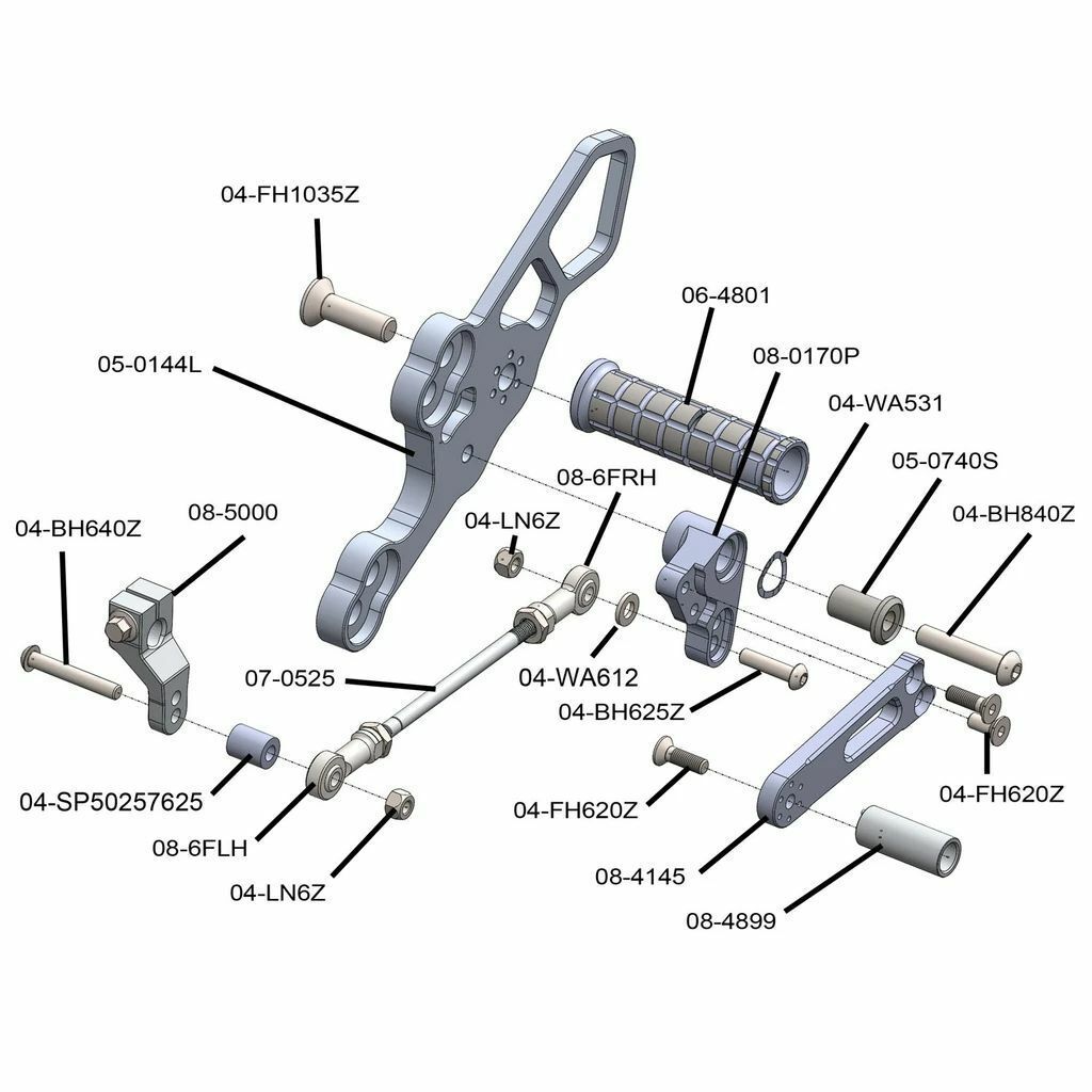 Virtually any part in our rearset kit can be purchased separately from our kits under the Spare Parts tab