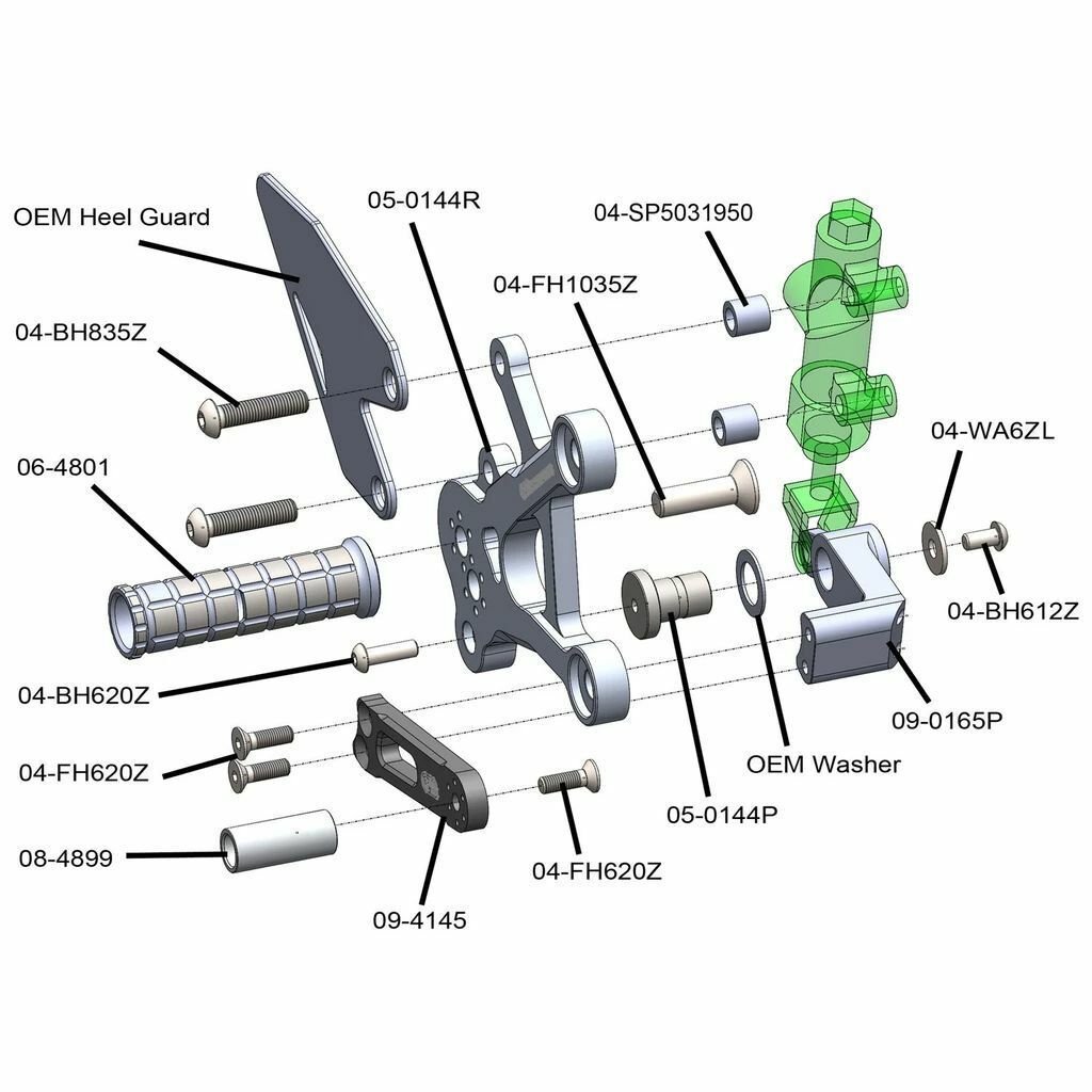 OEM Parts: Woodcraft rearsets assume you are replacing OEM rearsets. This kit utilizes some OEM components - see exploded drawings for details.