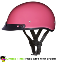 Our D.O.T. Daytona Slim Line Skull Cap 1/2 Shell Helmet In The Hi-Gloss Pink Finish, Meets And Exceeds D.O.T. FMVSS 218 Standards And Is The Smallest D.O.T. 1/2 Shell Helmet Ever Made!! With 3 Different Shell Sizes, You're Sure To Get That Proportionate Fit!! Available With Or Without Removable, Snap On Gloss Black Mini Scoop Visor. Many More Colors And Designs Available Such As Soft Touch Dull Black, Hi-Gloss Black And White; Custom Colors: Black Cherry, Gun Metal Grey Metallic, Pearl White And Silver Metallic; Specialty Items: Carbon Fiber, Leather And Graphics. Free Head Wrap And Cloth Draw String Bag Included. Sizes Range From 2XS-2XL.