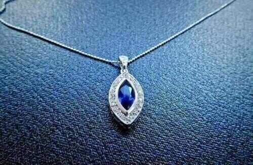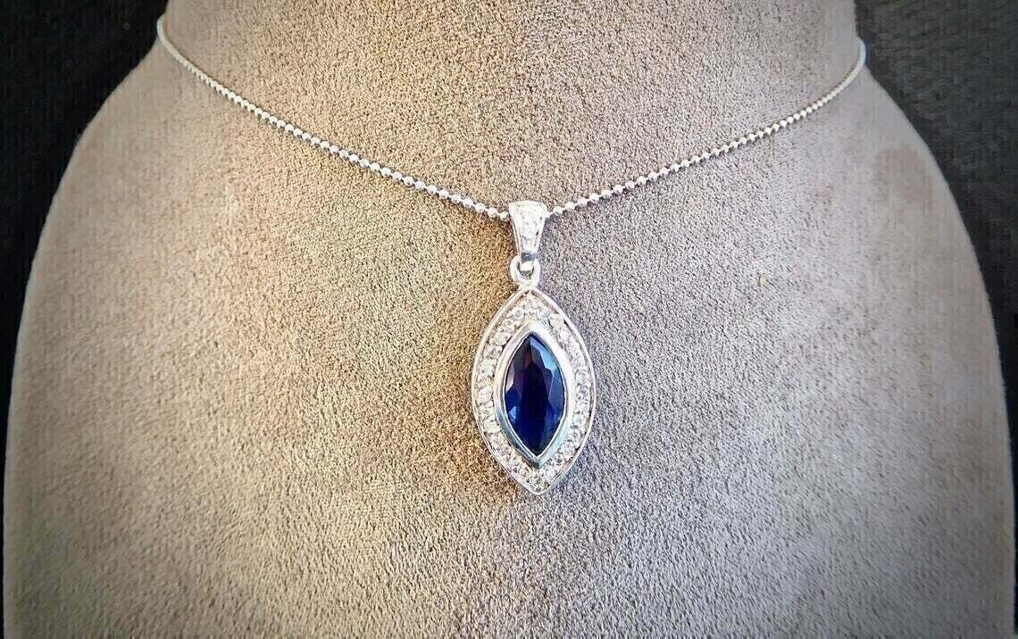 2CT Marquise Cut Lab-Created Blue Sapphire Beauty Pendant 14k White Gold Plated