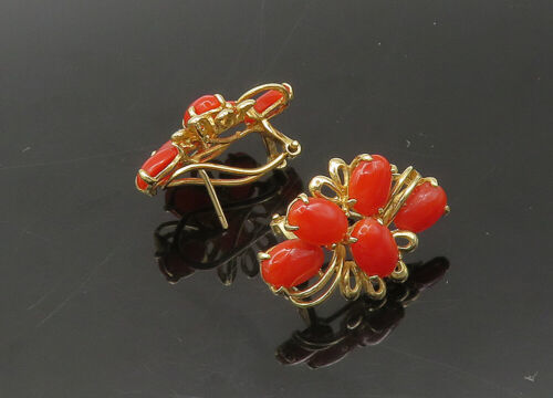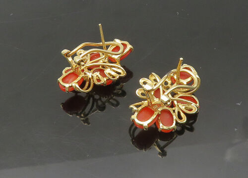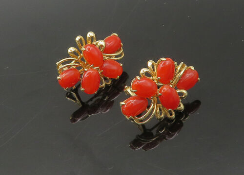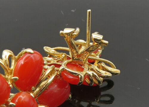 14K GOLD - Vintage Cabochon Cut Coral Shiny Victorian Drop Earrings - GE070