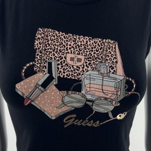 Guess Tank Top Sz M Black Pink Purse Perfume Fashion Graphic Sleeveless.