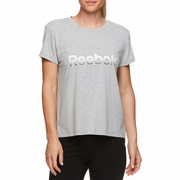 Reebok Women's Short Sleeve Jersey Graphic Tee, Grey Heather Size L