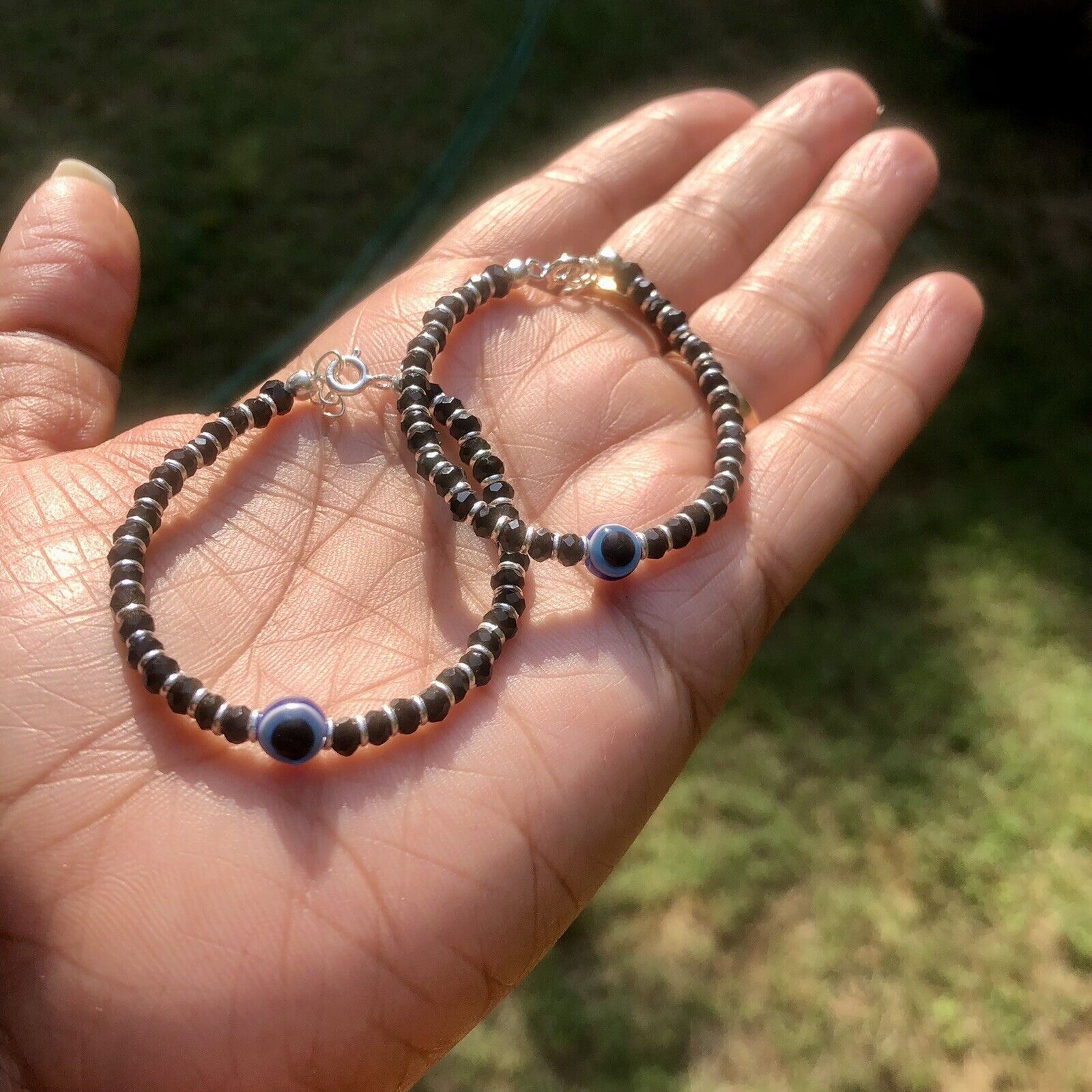 Bracciale di protezione per occhi malvagi in argento 2 pezzi 5 "Amuleto...