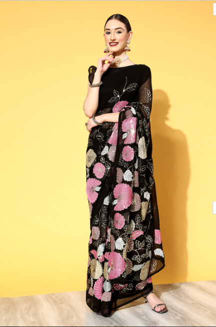Ethnic Motifs Pure Georgette Saree with and similar items