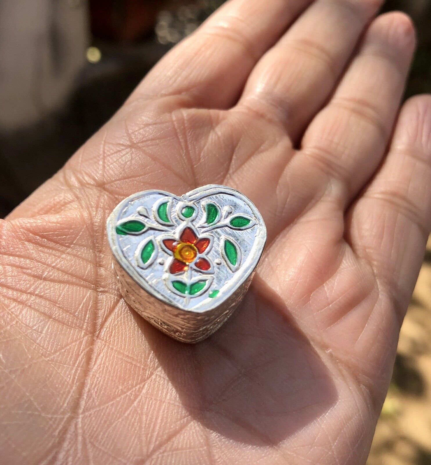 Portagioie in argento 925 fatto a mano con gingillo Kajal a forma di cuore,...