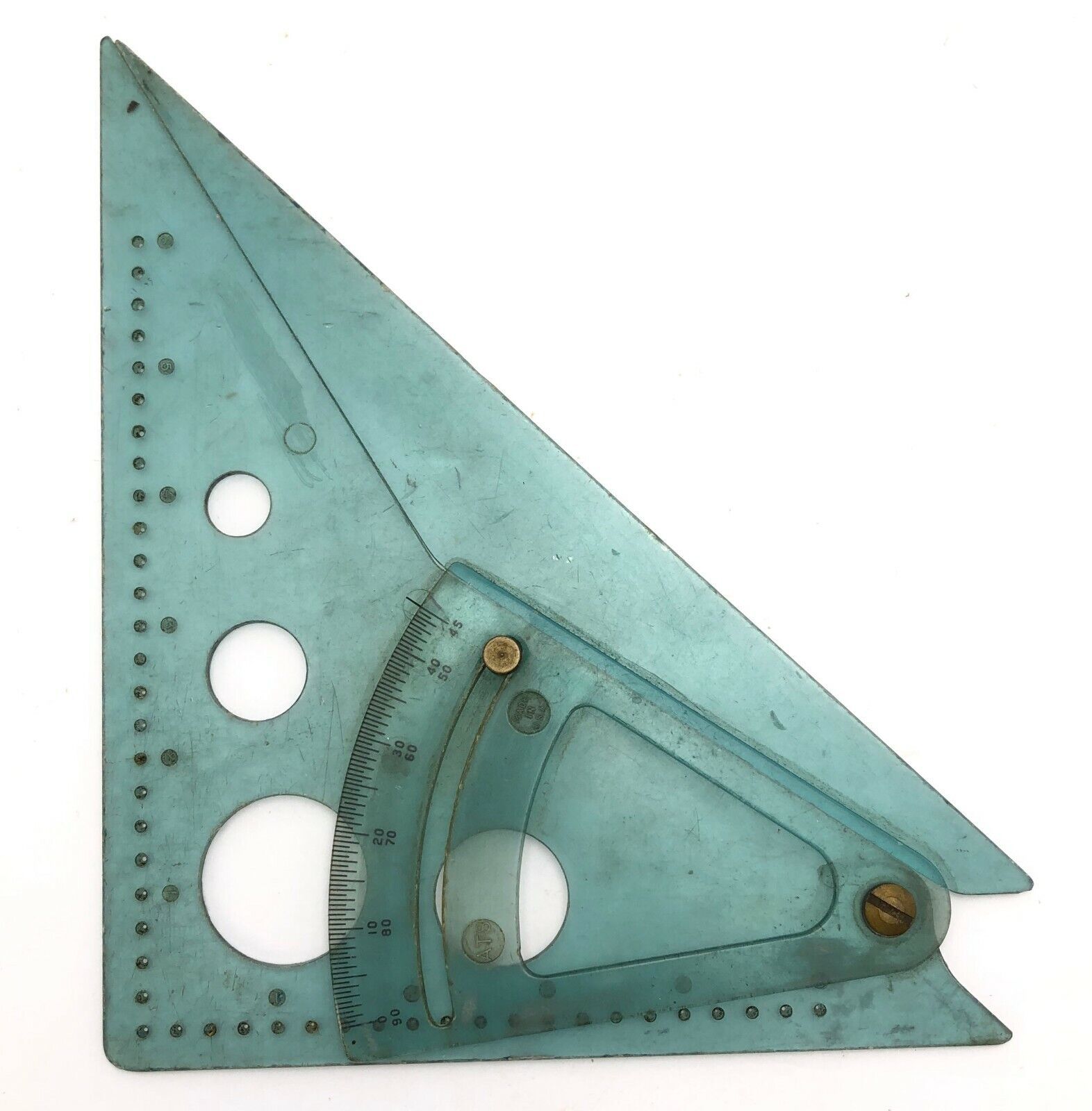 Vintage C-Thru Angle Protractor 0-90 Degrees Adjustable Green AT8 Brass Hardware