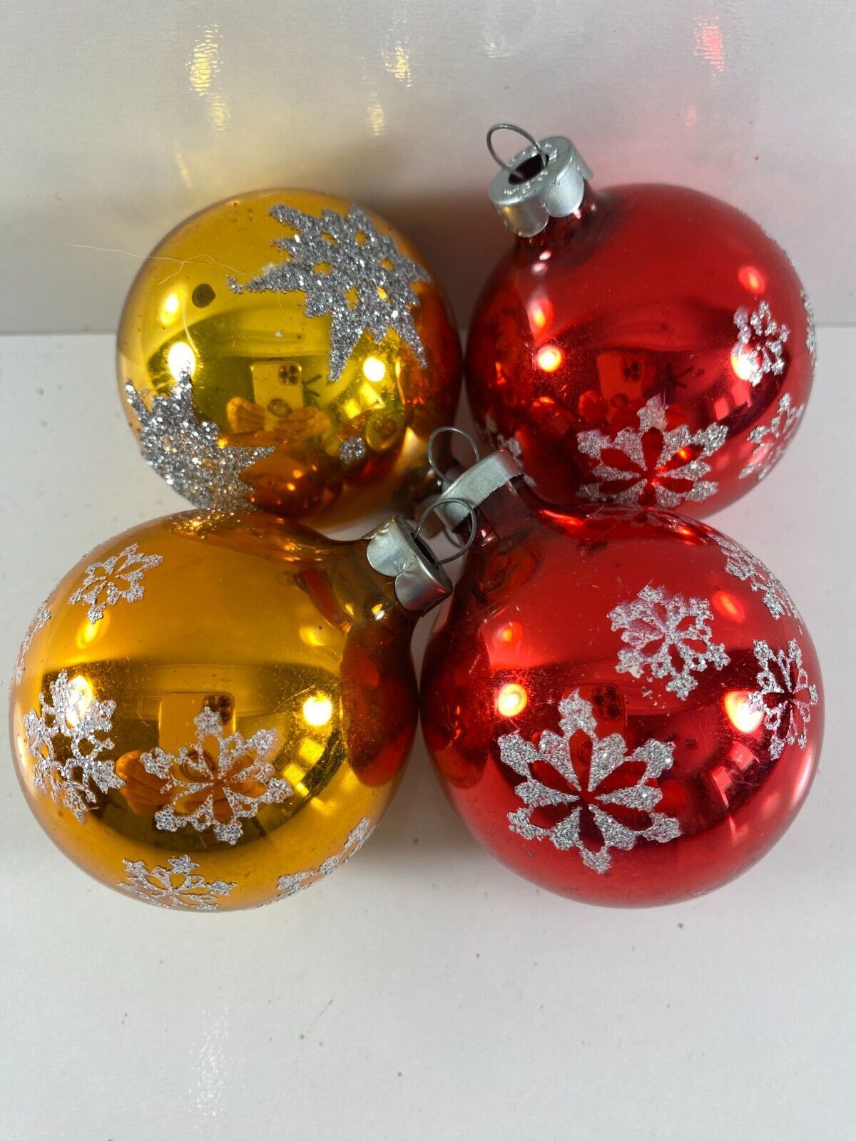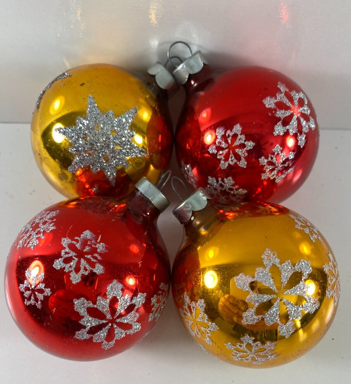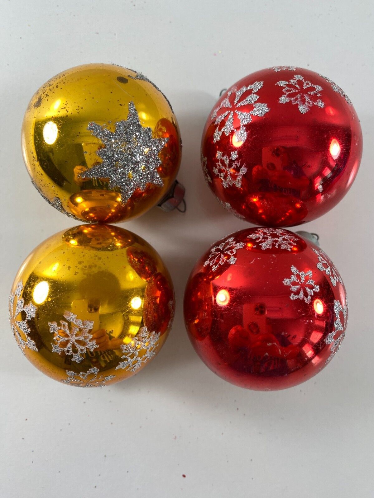 Vintage Lot 4 Red Gold Snowflake RAUCH USA Glass Ball Christmas Ornaments
