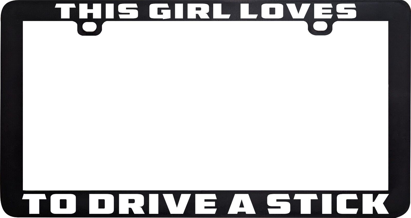 THIS GIRL LOVES TO DRIVE A STICK FUNNY HUMOR METAL LICENSE PLATE FRAME