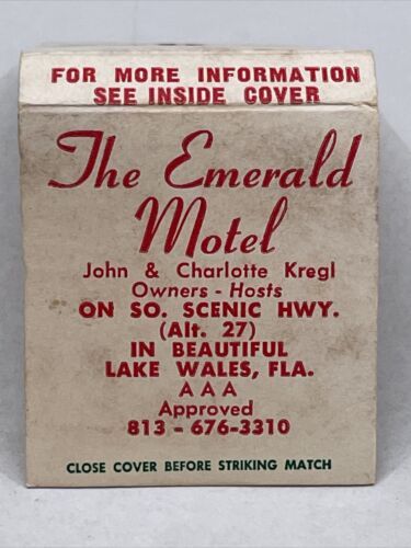 Front Strike Matchbook Cover The Emerald Motel Lake Wales, Fla gmg Unstruck