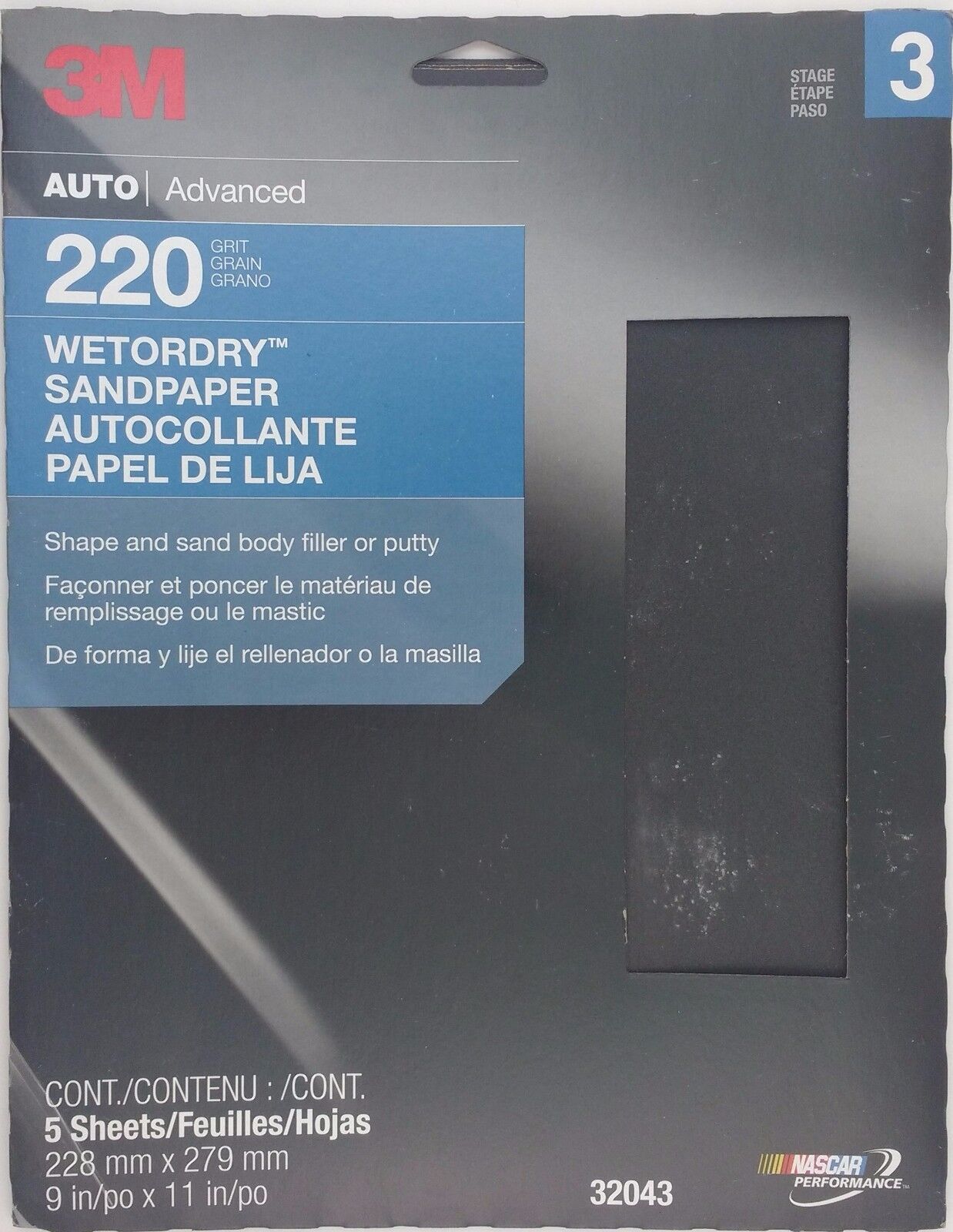 Grit: 220 5 Sheets/Pk MPN: 32043 UPC: 051131320437
