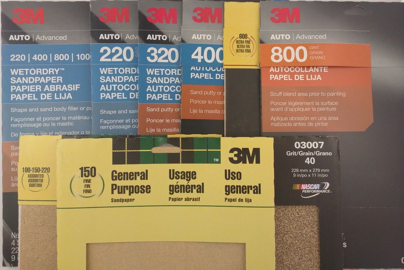 3M SANDPAPER Auto Boat Shop Home 9"x11", 3-5 Sheets/Pk SELECT: Dry 'DryorWet'