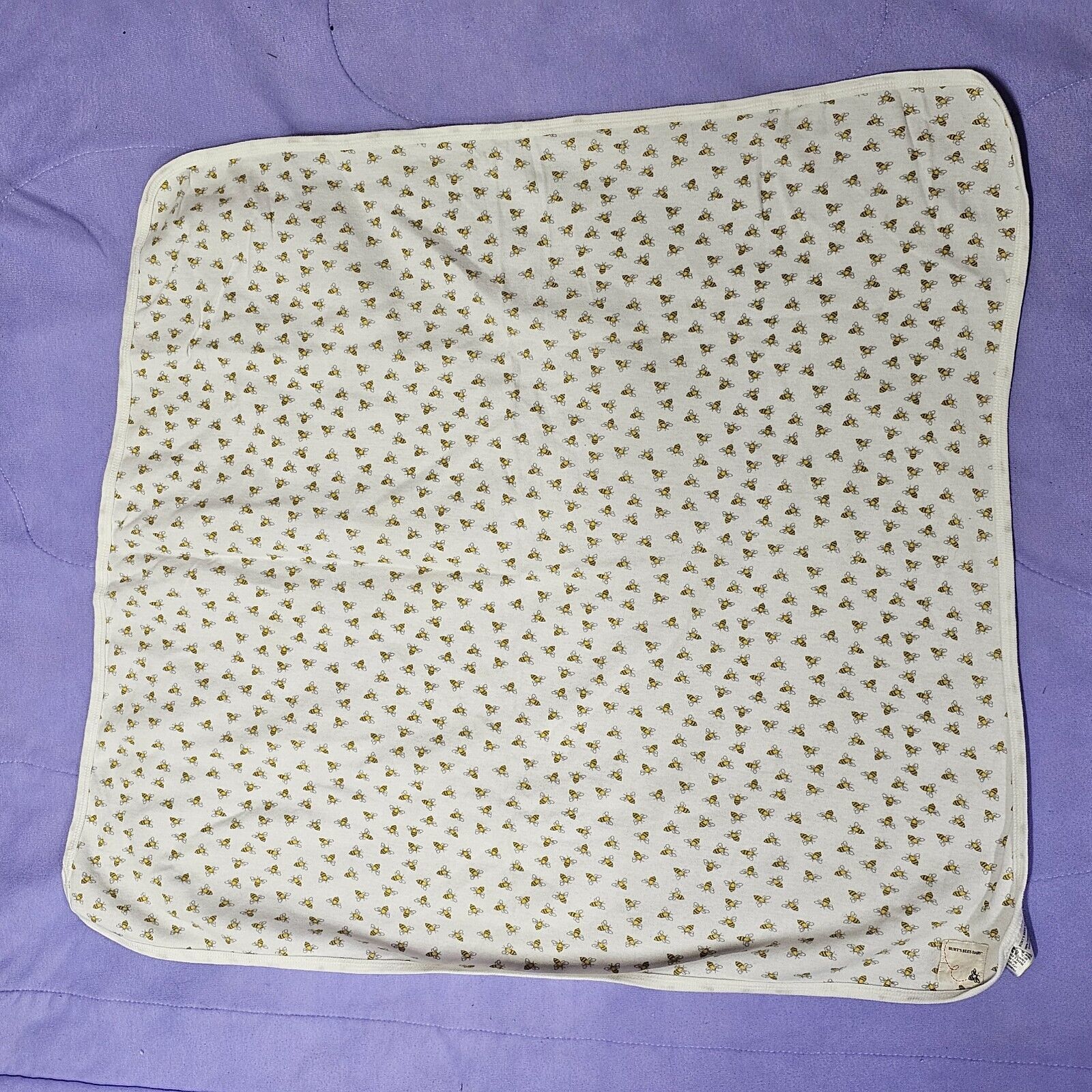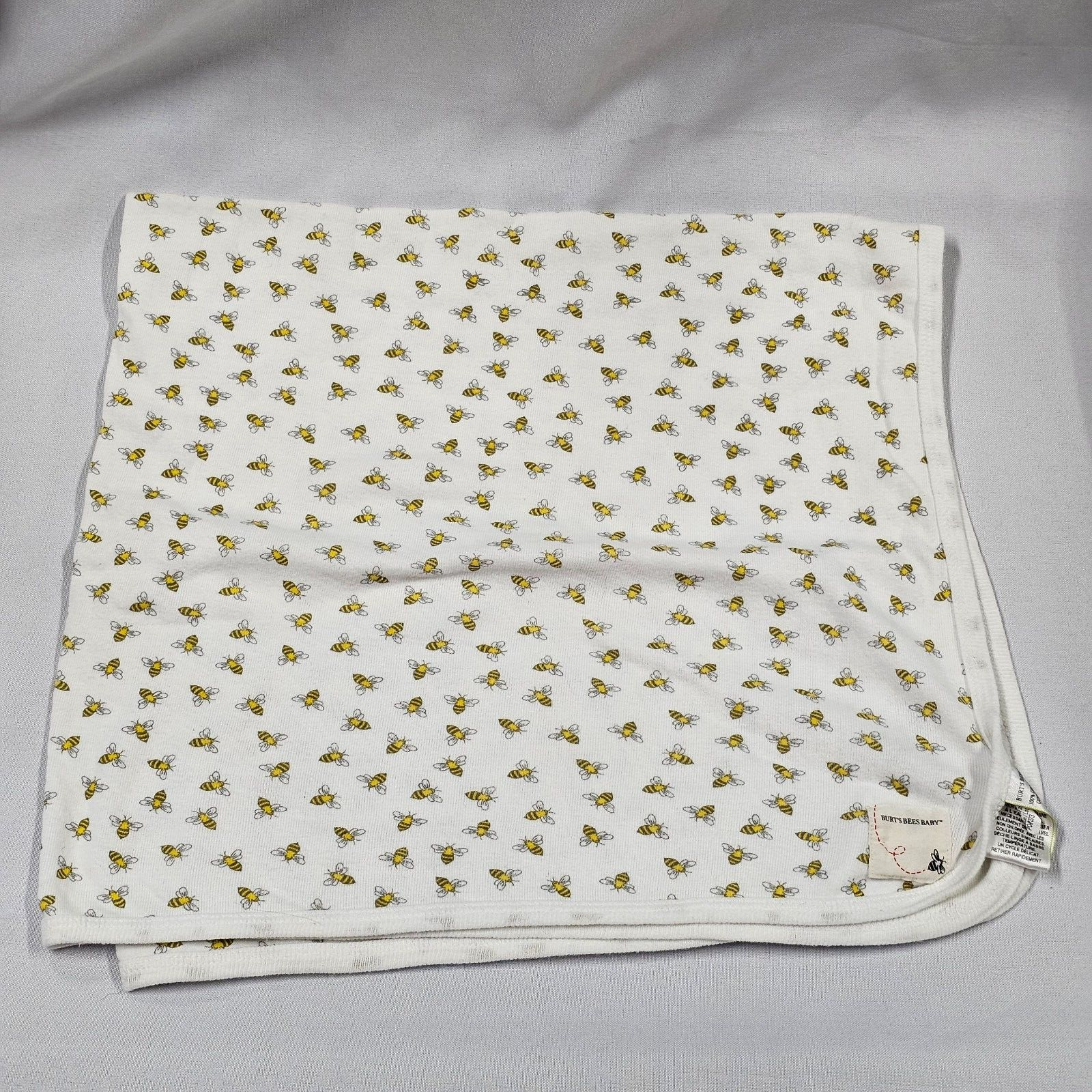 Burt's Bees Organic Cotton White 1-ply thin Swaddle Baby Blanket Yellow White