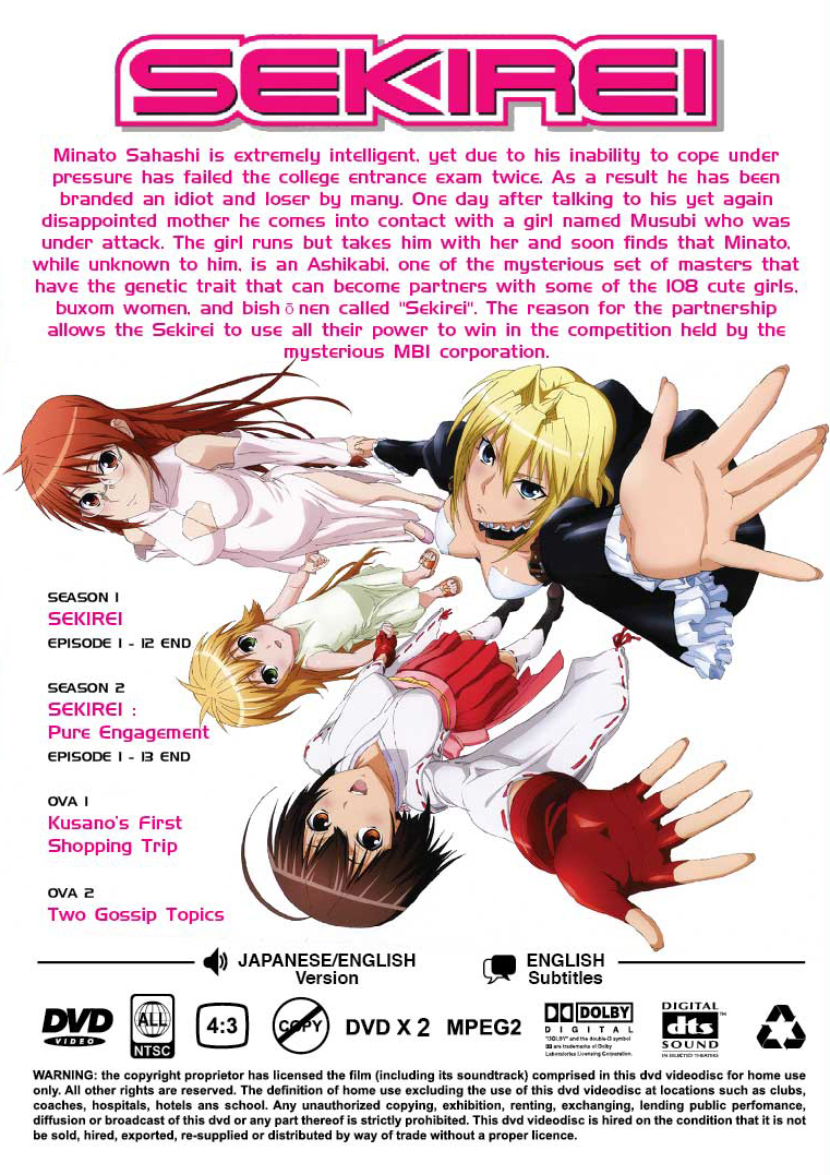 Season 2 : The second stage of the battle royale known as the Sekirei Plan is underway. Tokyo has been closed off; no Sekirei or Ashikabi may leave. Minato Sahashi and his harem of Sekirei must now prepare to fight new battles as changes to the rules are put into place. However, not all groups will return to the battle: some Sekirei are loved very much by their Ashikabi partners, who would rather forfeit the prize than see them perish.