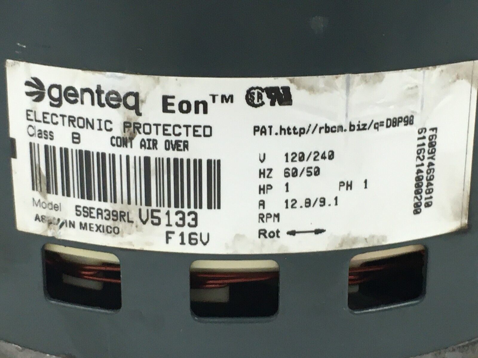 Genteq EON Motor ONLY 5SEA39RLV5133 1HP 120/240V used #MB207