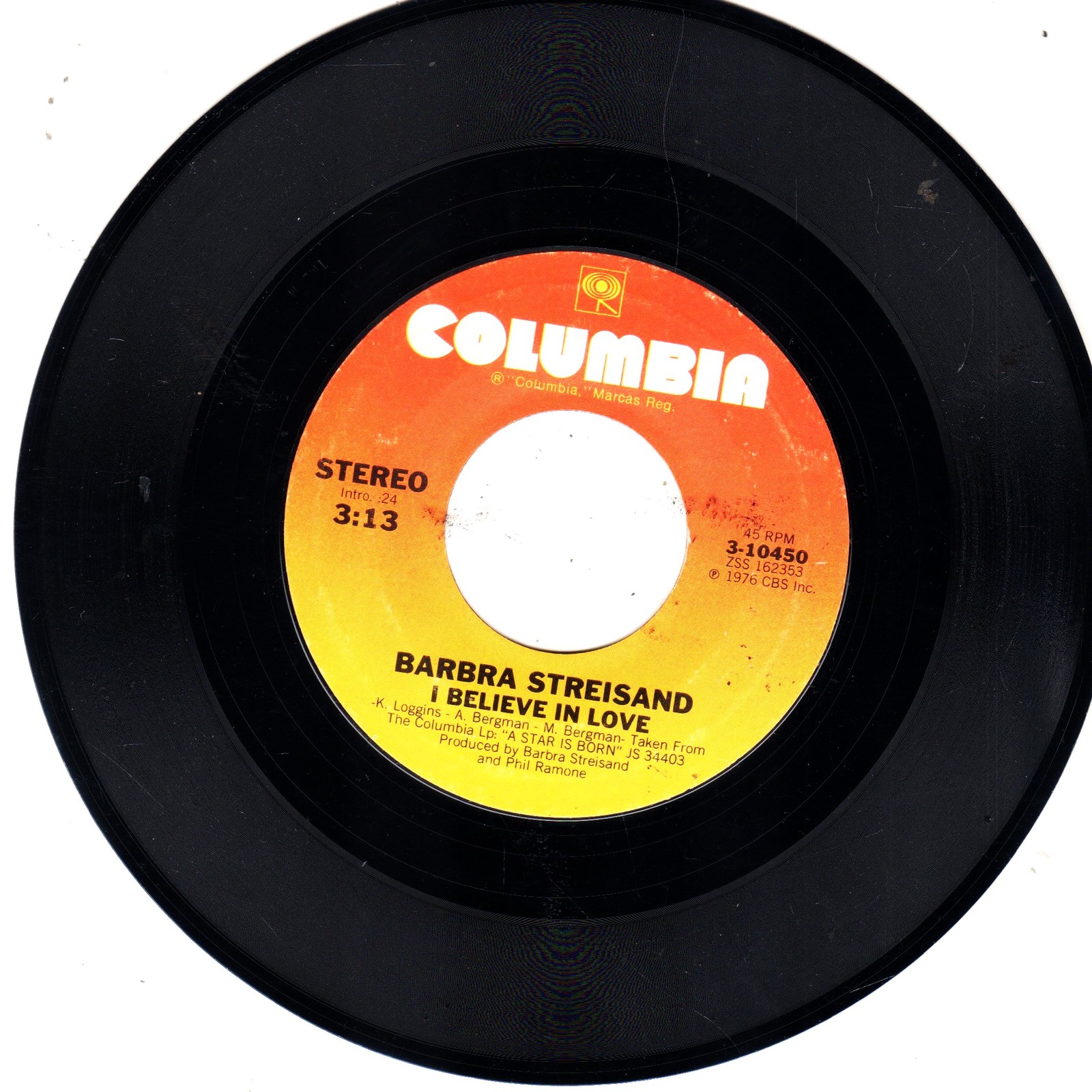 Barbra Streisand -Love Theme from A Star Is Born/I Believe In Love 45rpm record