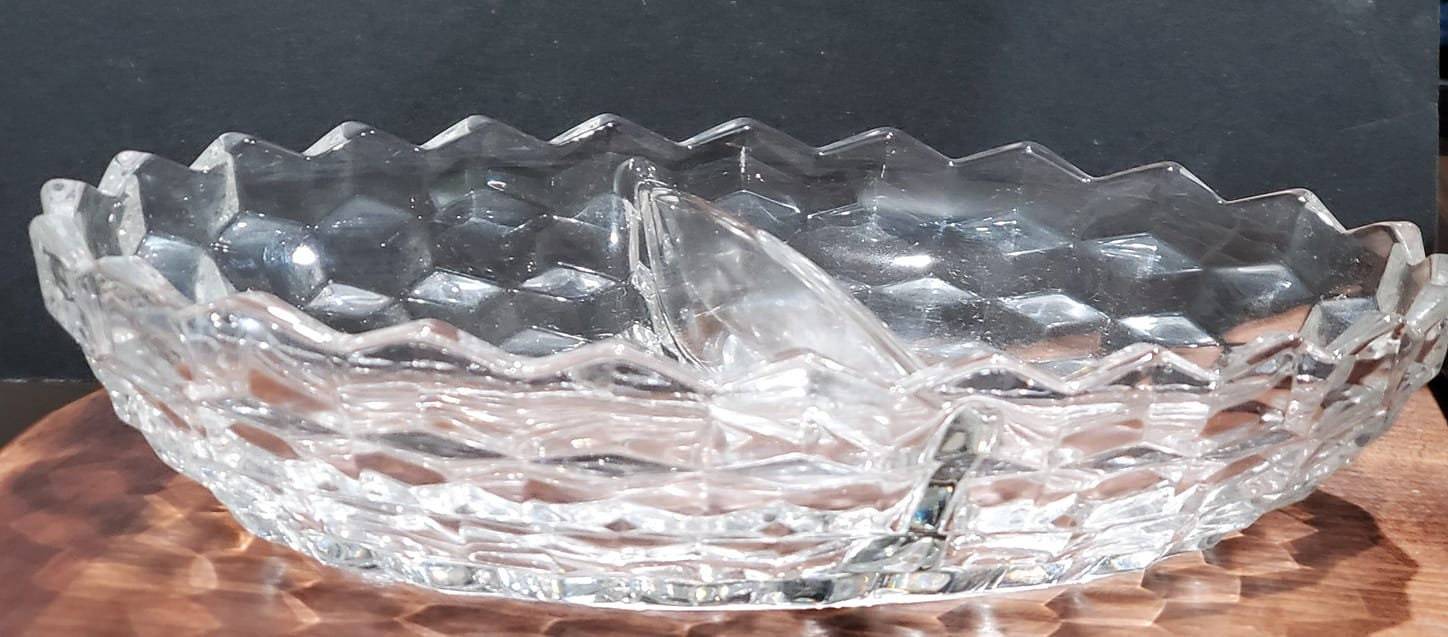 Vintage Fostoria American Clear Cubist glass vegetable tray.