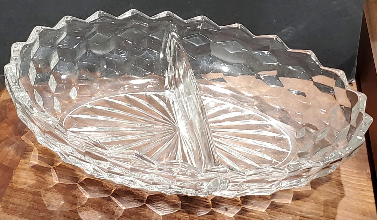 Vintage Fostoria American Clear Cubist Divided 2 Part 10" Dish for Vegetables, R