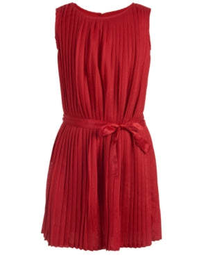 Spruce up the holidays with stunning style in the shimmery Tommy Hilfiger Kids Pleated Sleeveless Dress. The shift silhouette boasts a pleated designa long with a self-tie belt at the waist. A round neckline, a small key hole opening at the back, and a straight hem complete the fully-lined style. 80%polyester, 20% metallic; Lining: 100% polyester. Machine wash cold, tumble dry low. Imported. Product measurements were taken using size Large (12-14 Big Kids). Please note that measurements may vary by size. Measurements: * Length: 32 12 in.