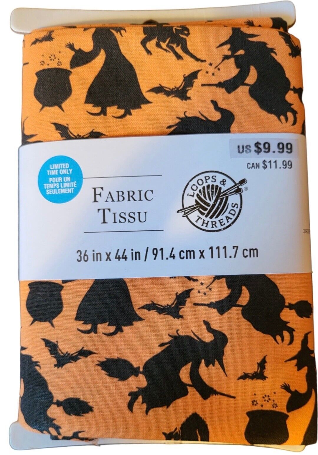 Loops & Threads Fabric, 1 Yard Precut 36" x 44", Witch, Bat, Cat, |