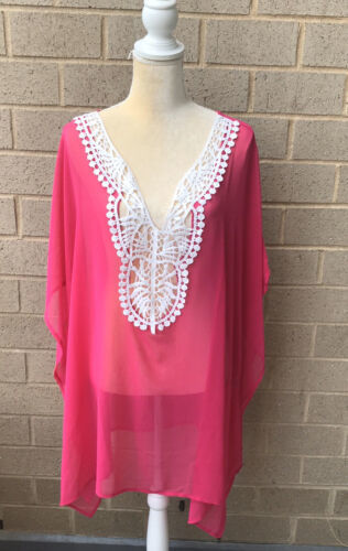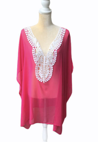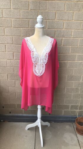 Beaches And Boho Plus Sz Pink Cover Up With Lace Detail Caftan Style 2X