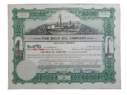 Kashmir Oil Inc. Capital Stock Certificate, 100 Shares, The State of Utah