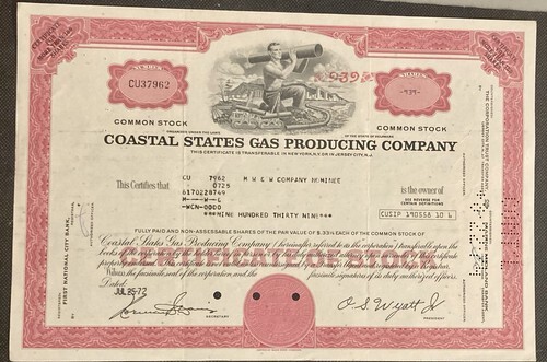 Coastal States Gas Producing Company, Common Stock Certificate, 100 Shares, DE