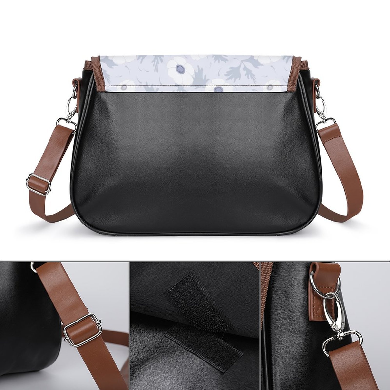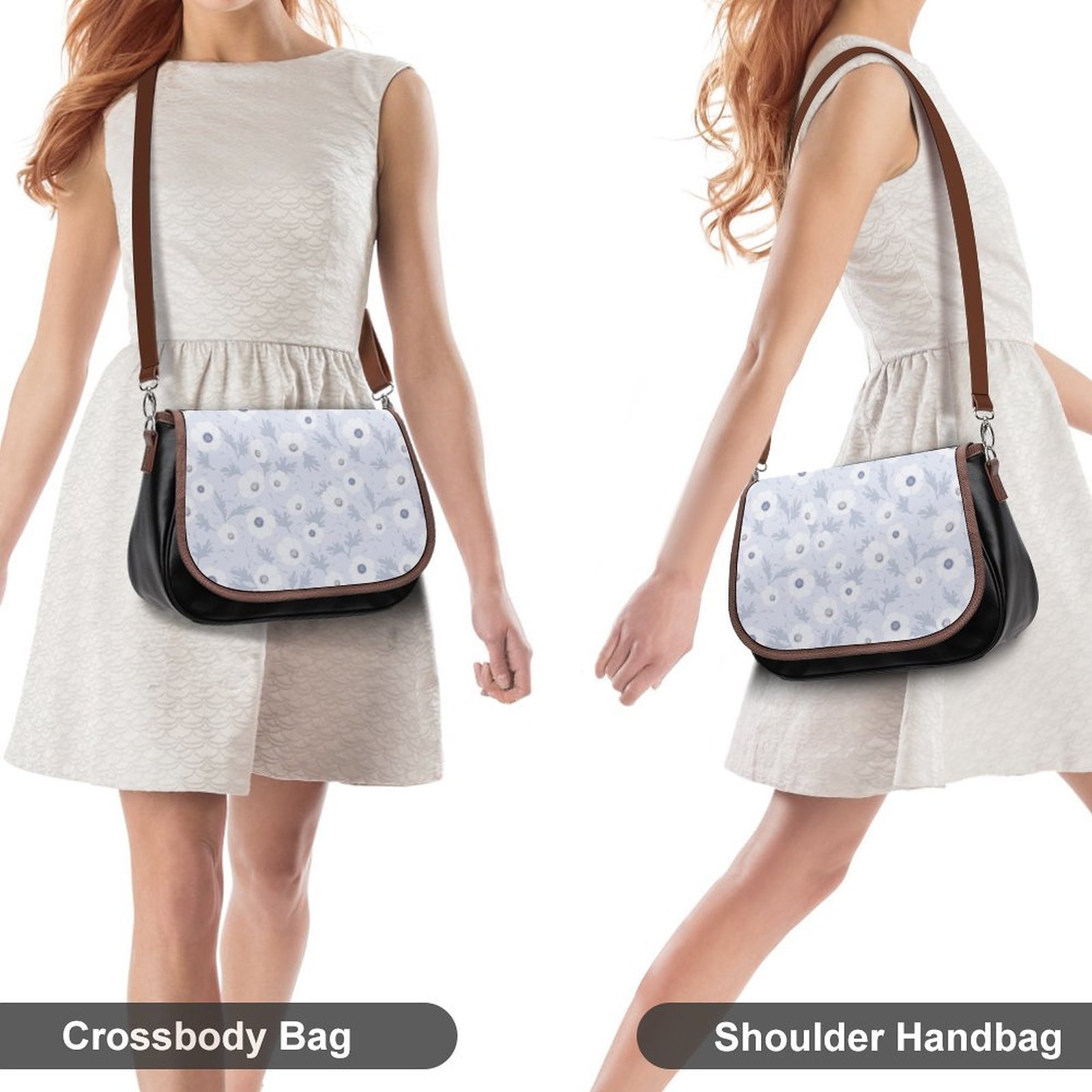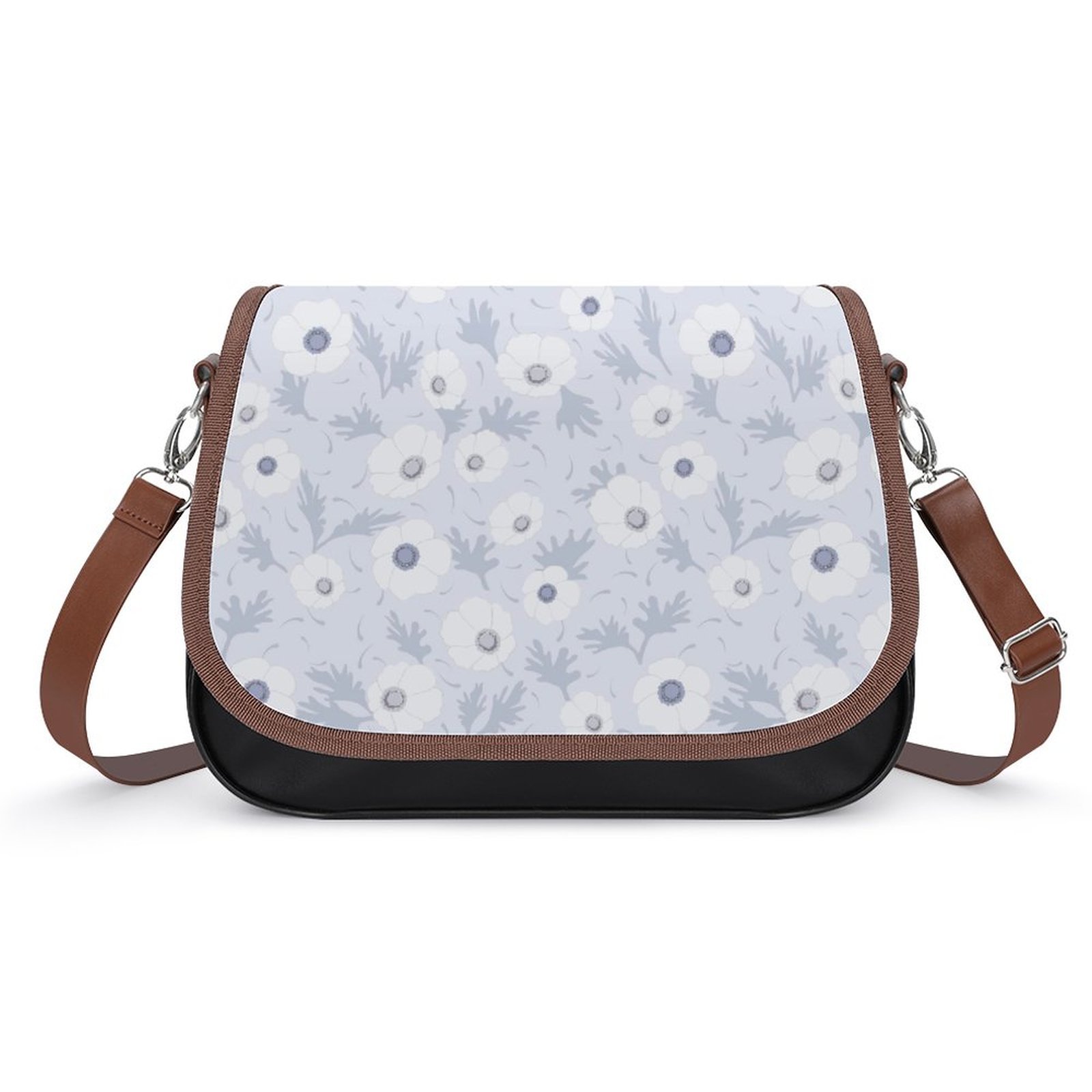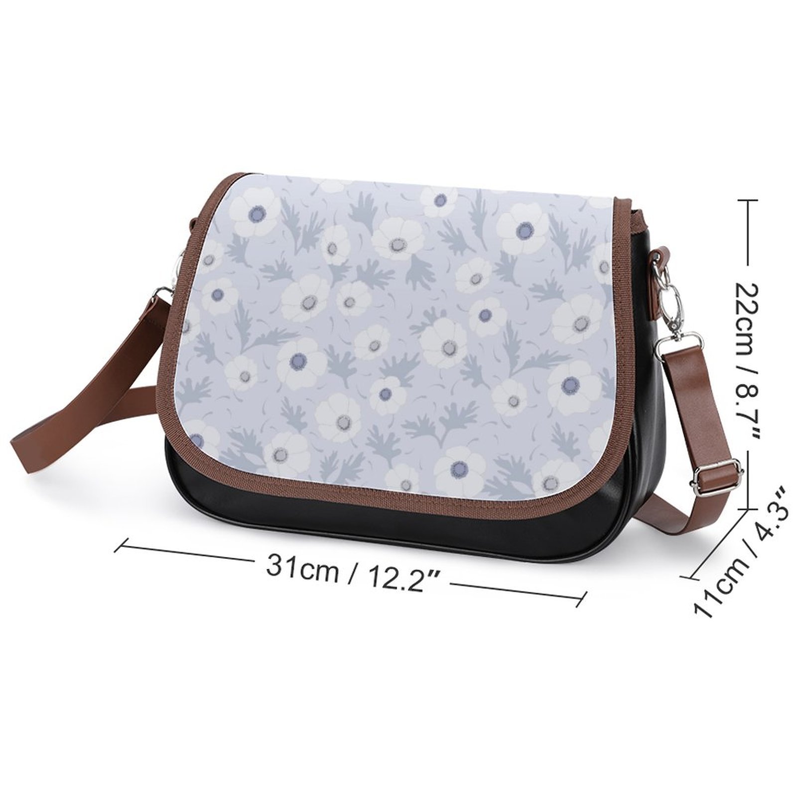 Mondxflaur White Flowers Floral Messenger Bag for Women PU Leather Crossbody Bag
