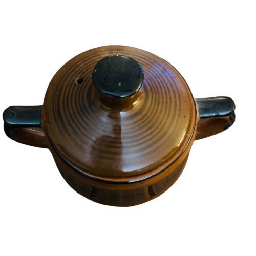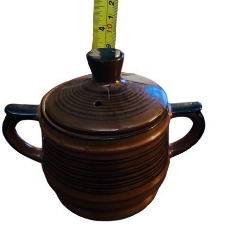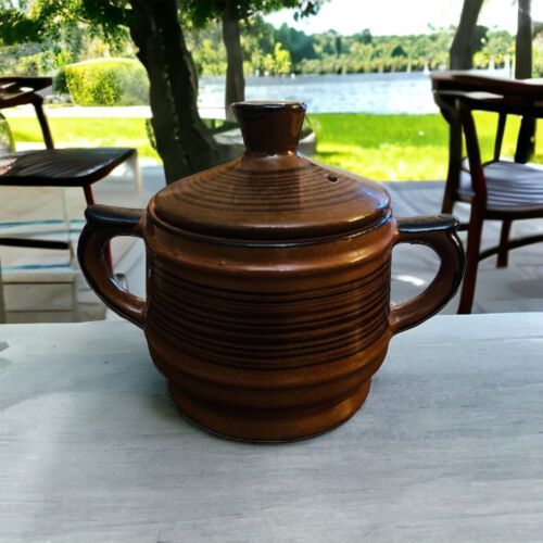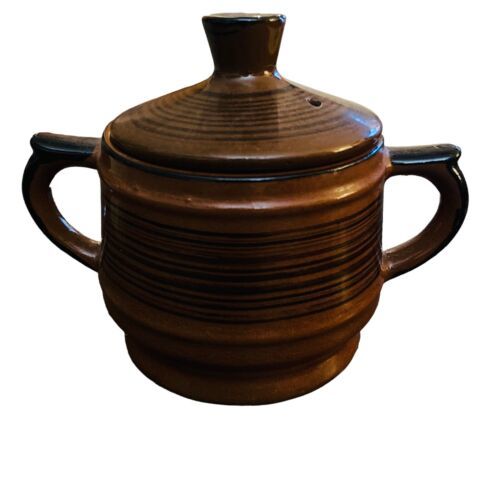 Mid Century Modern Vintage Brown Black Striped Ceramic Striated Sugar Bowl Japan. Excellent vintage PREOWNED condition with no damage. See all photos!