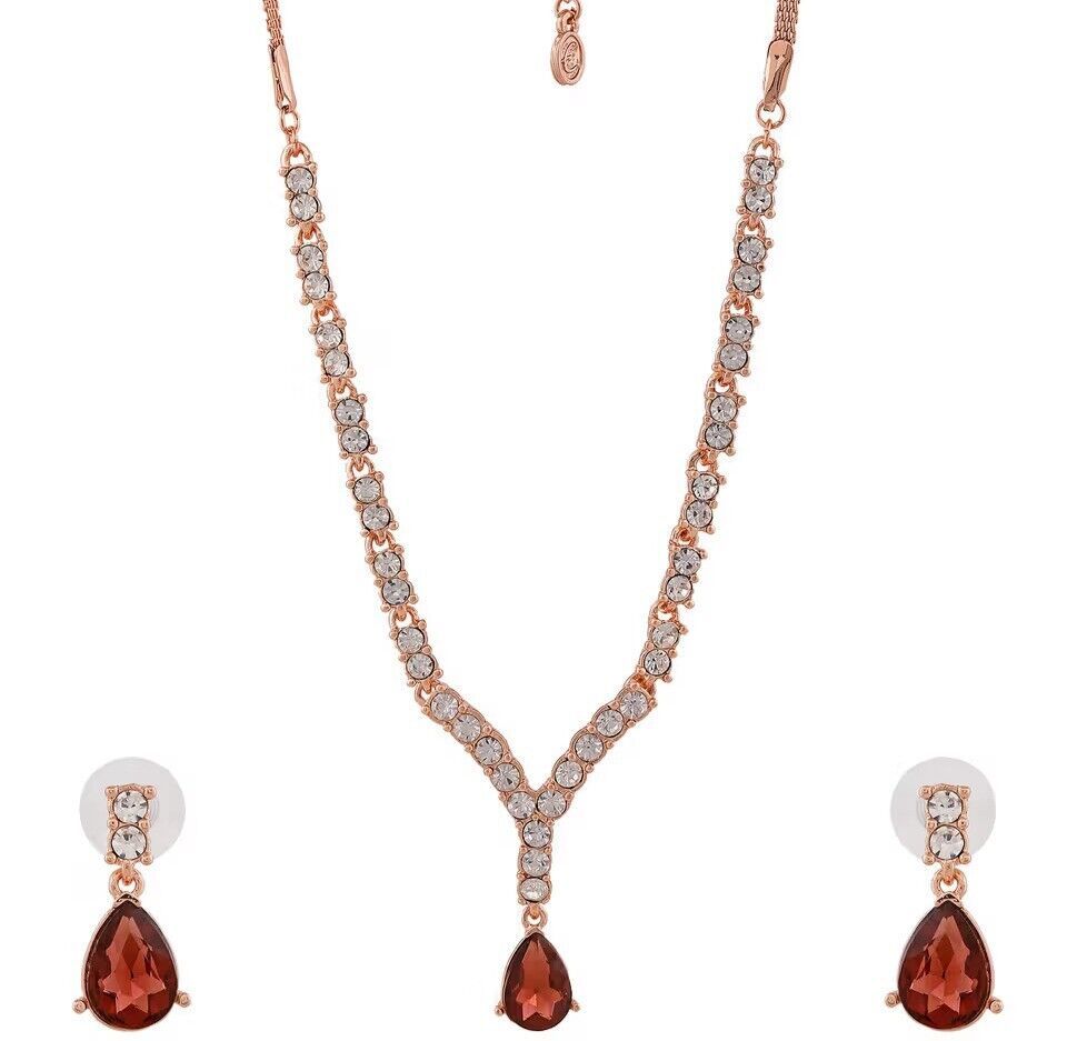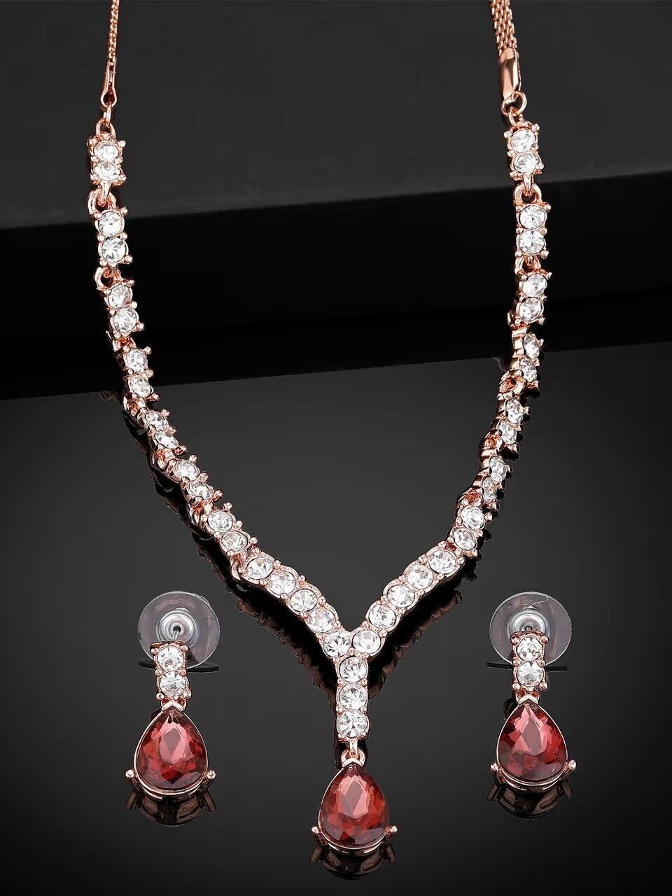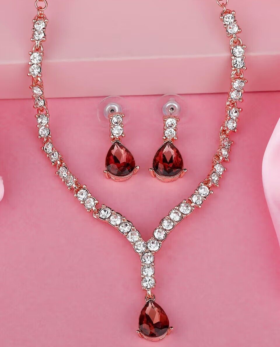 Jewelry Set Lab Created Pear Cut Red Garnet 4.5Ct Beauty 14K Rose Gold Plated
