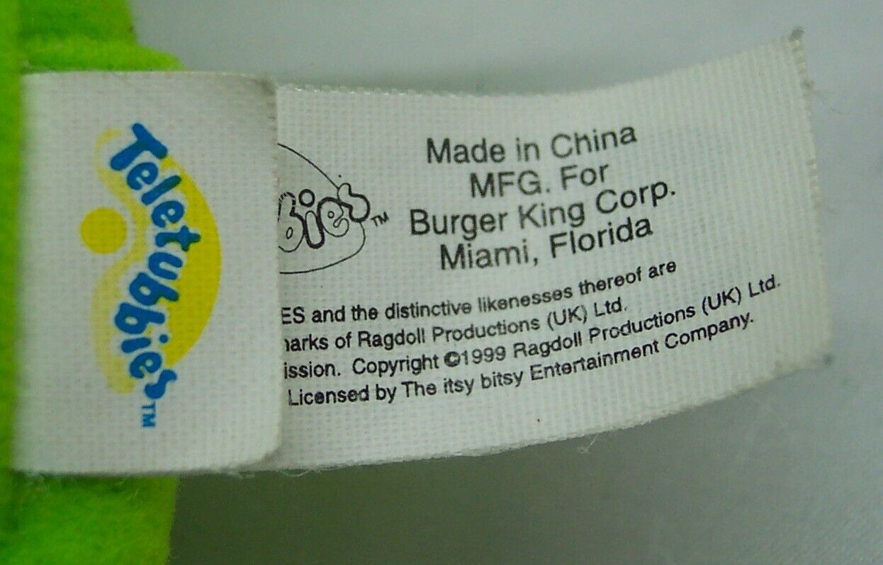 This is a Teletubbies GREEN DIPSY CHARACTER Plush STUFFED ANIMAL TOY KEYCHAIN. This was a promo item for Burger King in 1999. It is 4 1/2 inches tall. It is in great condition. It is CLEAN! No tears, stains or defects. Combine auctions to save on shipping. Please contact me if you need to make other payment arrangements. EAG