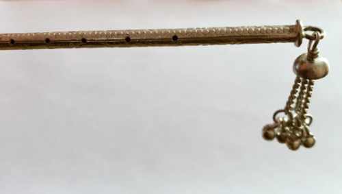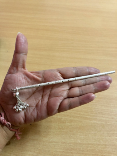 * Basuri decoratif en argent, flûte pour Lord Krishna. A utiliser pour le sringaar du Seigneur Krishna pendant Janmashthami et d'autres occasions religieuses