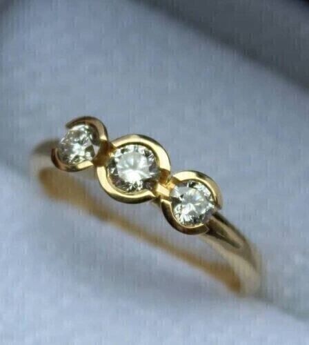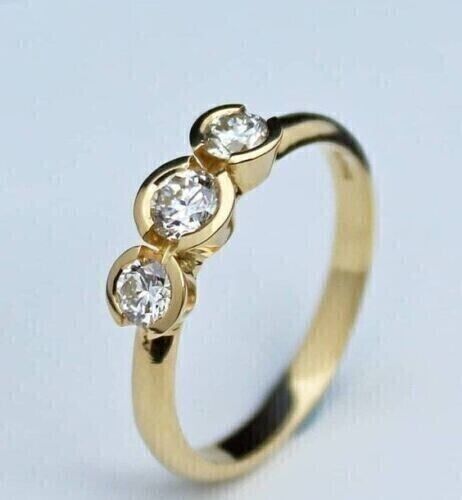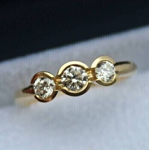 2CT Round Cut Lab Created Diamond 3 Stone Engagement Ring 14K Yellow Gold Plated