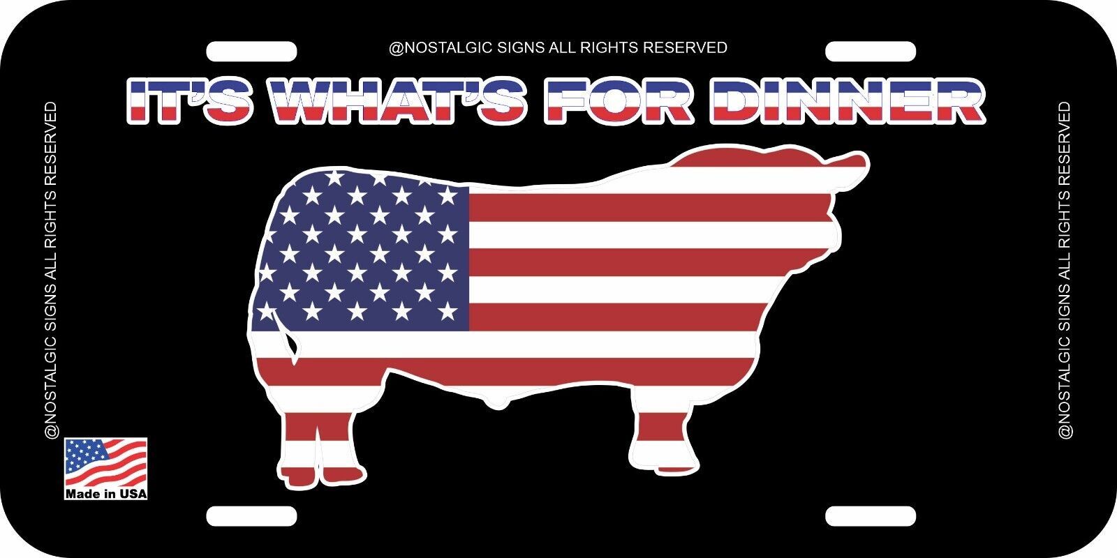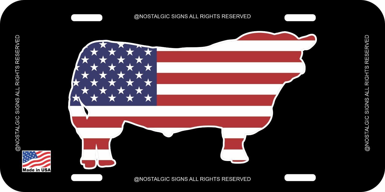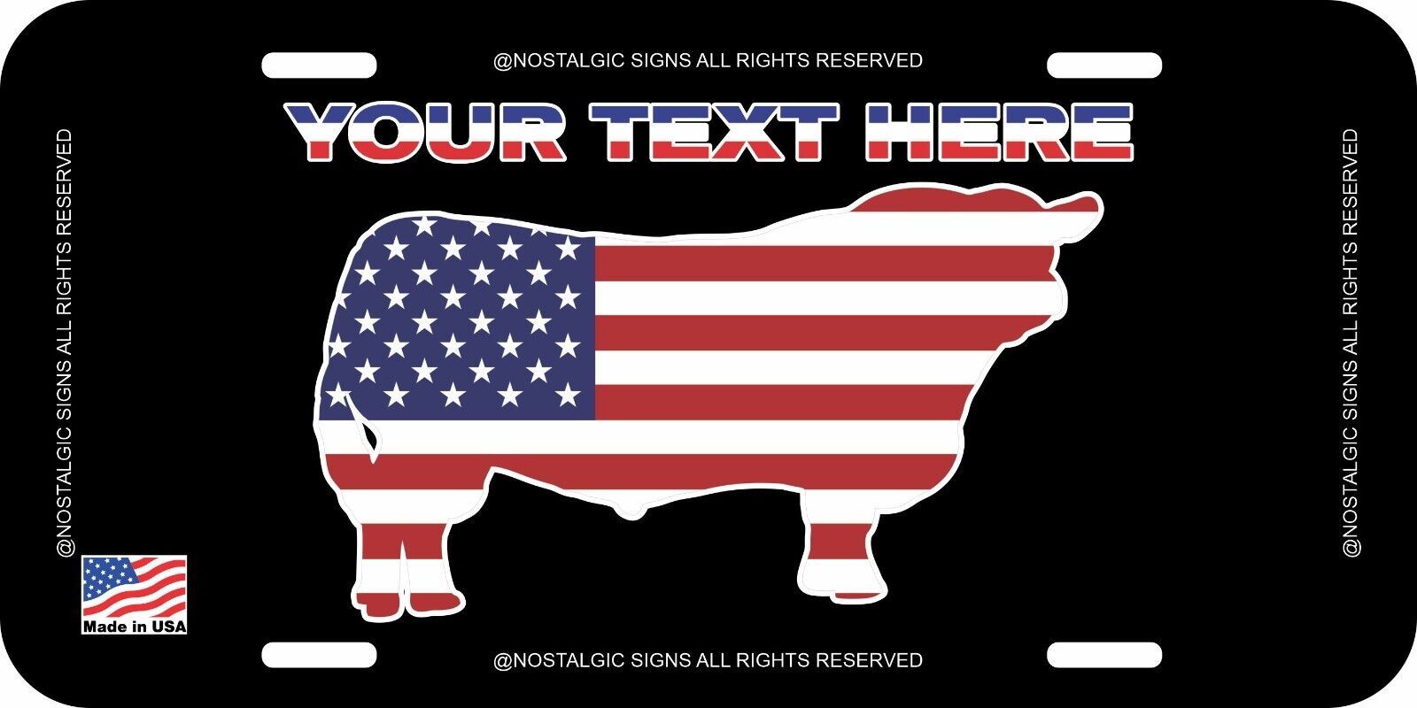 BEEF EAT BULL USA FLAG BLACK METAL LICENSE PLATE TAG FARMER CATTLE TRUCK CAR 02