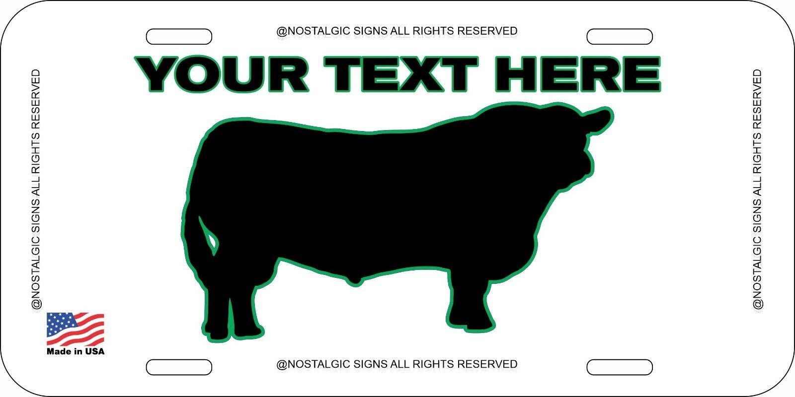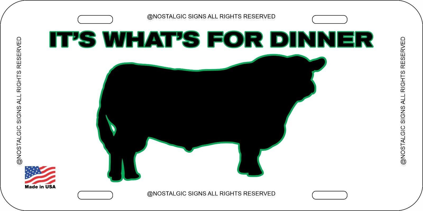 BEEF EAT BULL ONLY ALUMINUM METAL WHITE PLATE FARMER CATTLE TRUCK CAR WT GR