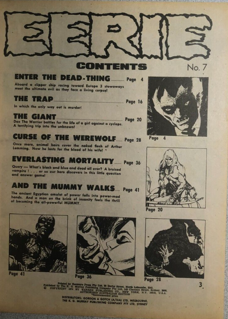 EERIE #7 (1974) Australian edition Warren B&W horror comics magazine FINE+