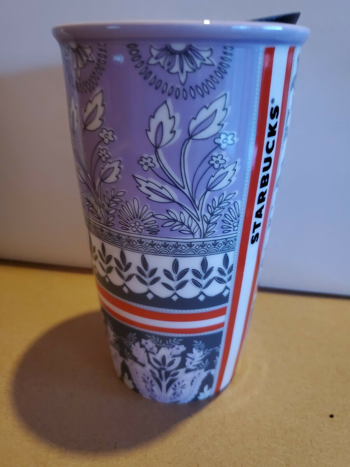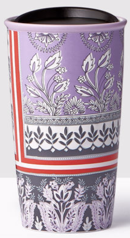 *Starbucks 2017 Lavender Floral Double Wall Traveler Ceramic Tumbler NEW WITH TA